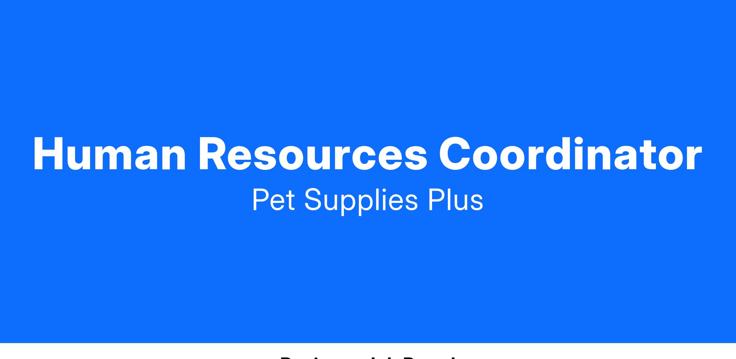 Human Resources Coordinator requirements include: