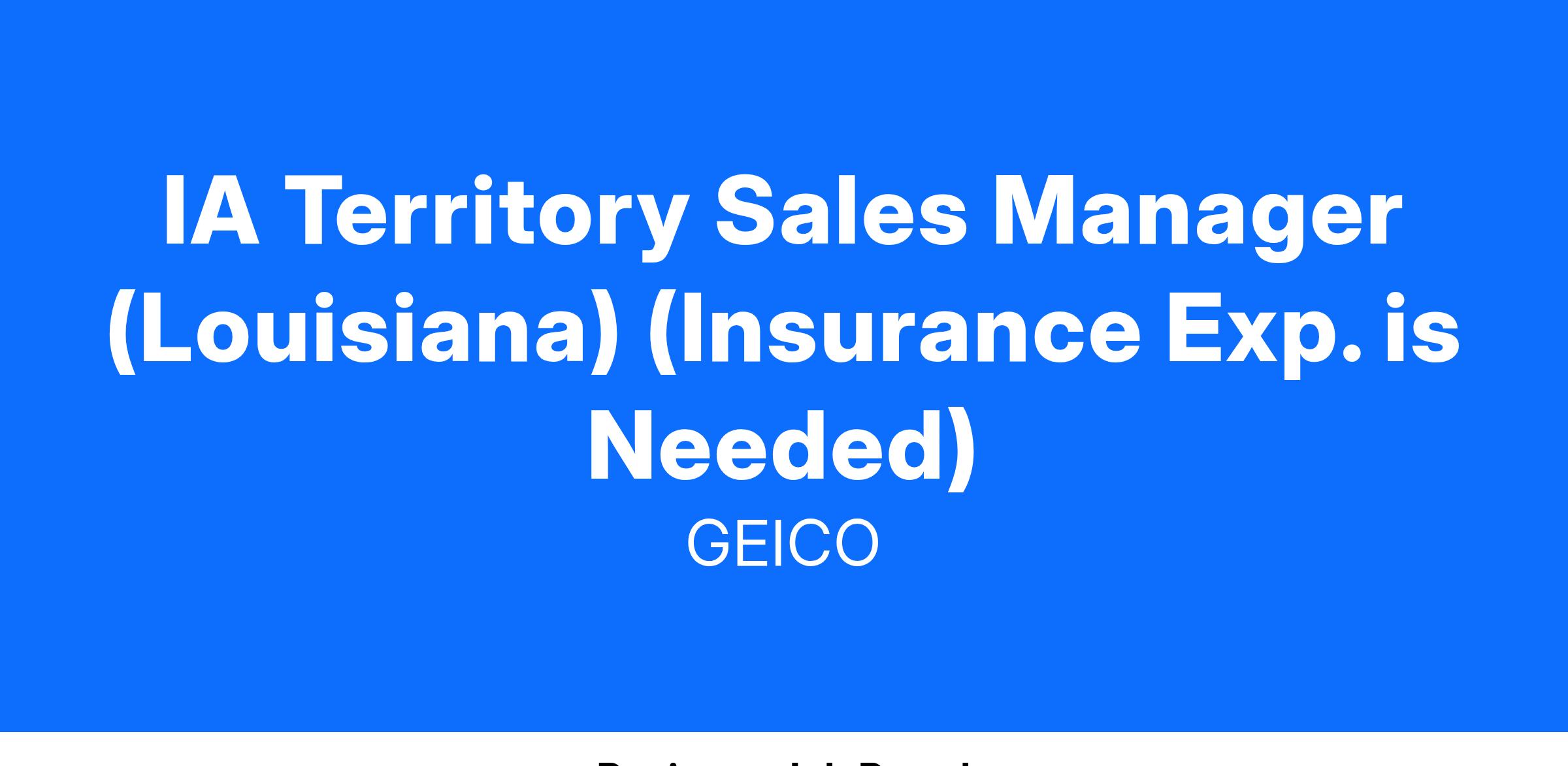 We are seeking an IA Territory Sales Manager who will be responsible for growing agency relationships to increase revenue and market share of GEICO and GEICO-affiliated products within an assigned geographic area.