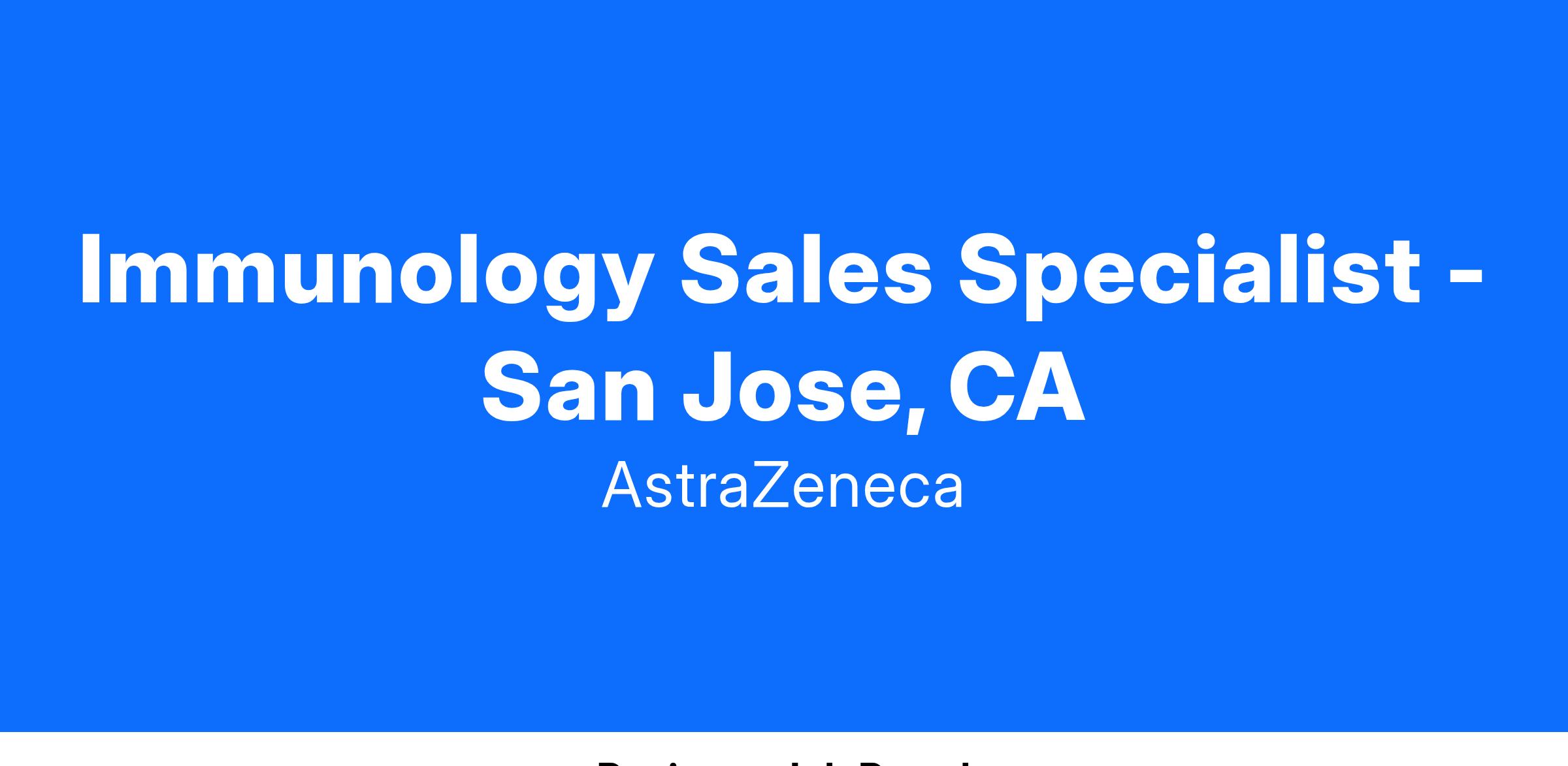 As a Biologic Sales Specialist – Immunology in San Jose, CA you will play a pivotal role in channeling our scientific capabilities to make a positive impact on changing patients’ lives. North American Commercial is the ‘face’ of AstraZeneca to our many healthcare clients. They represent many of the most well recognized and respected products in the industry, and build strong relationships with healthcare professionals.