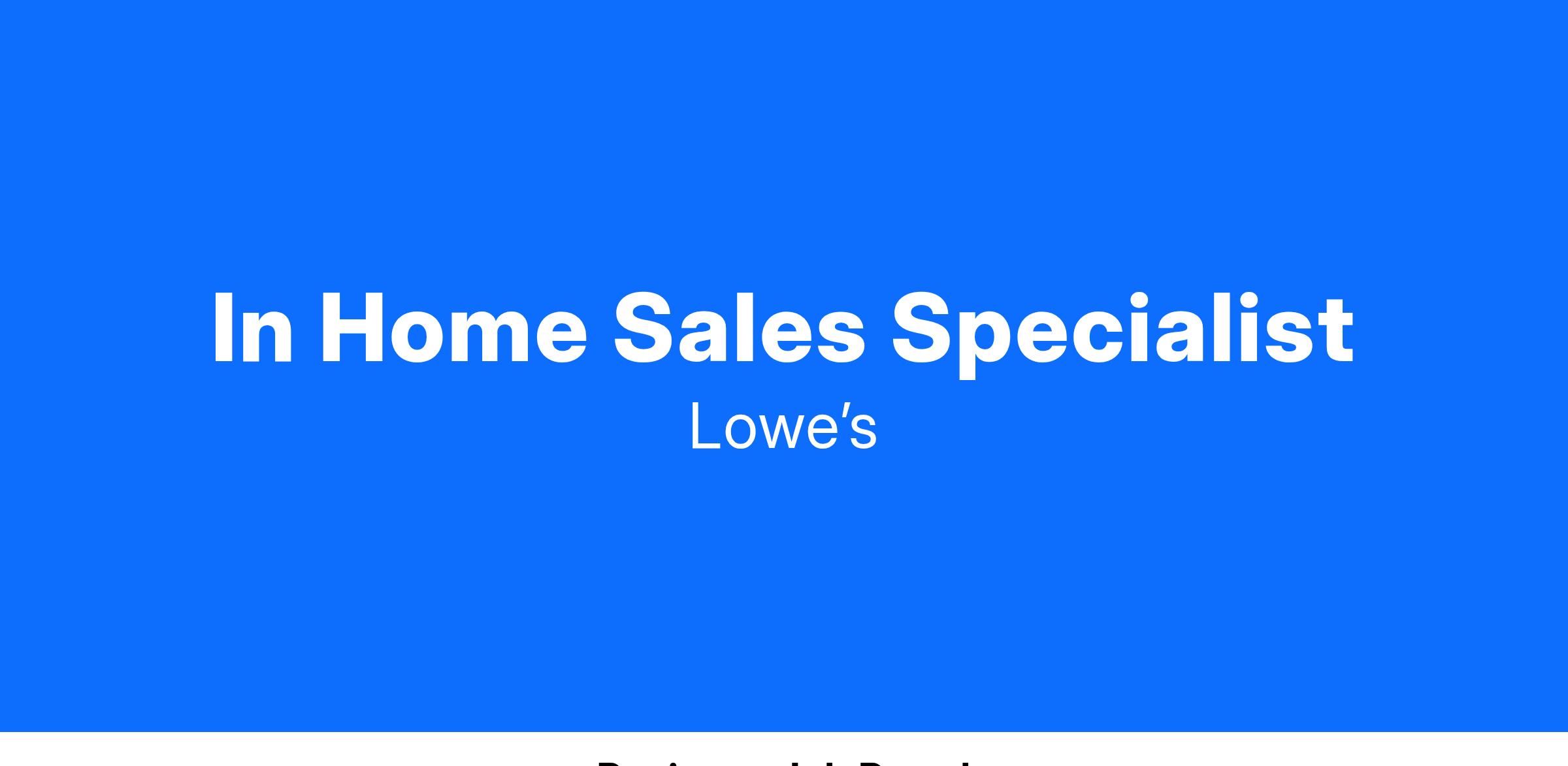 The In Home Sales Specialist is a vital role in Services sales execution, providing customers the right home improvement products, with the best service and value, from the comfort of their home. In Home Sales Specialist deliver a superior client experience by accurately assessing customer needs and swiftly creating a final quote/proposal. This associate spends most of his/her time in our customer homes or other locations to discuss project plans. The In Home Sales Specialist must be comfortable owning the customer relationship and engaging in conversation to understand customer needs, providing product and project consultation, and overcoming challenges to closing sales. To succeed in this role, this associates must demonstrate: strong sales acumen, the ability to generate and drive new business opportunities and maintaining store relationships, connectivity and a healthy pipeline, proven abilities to meet and exceed sales goals and objectives, and be committed to service excellence.