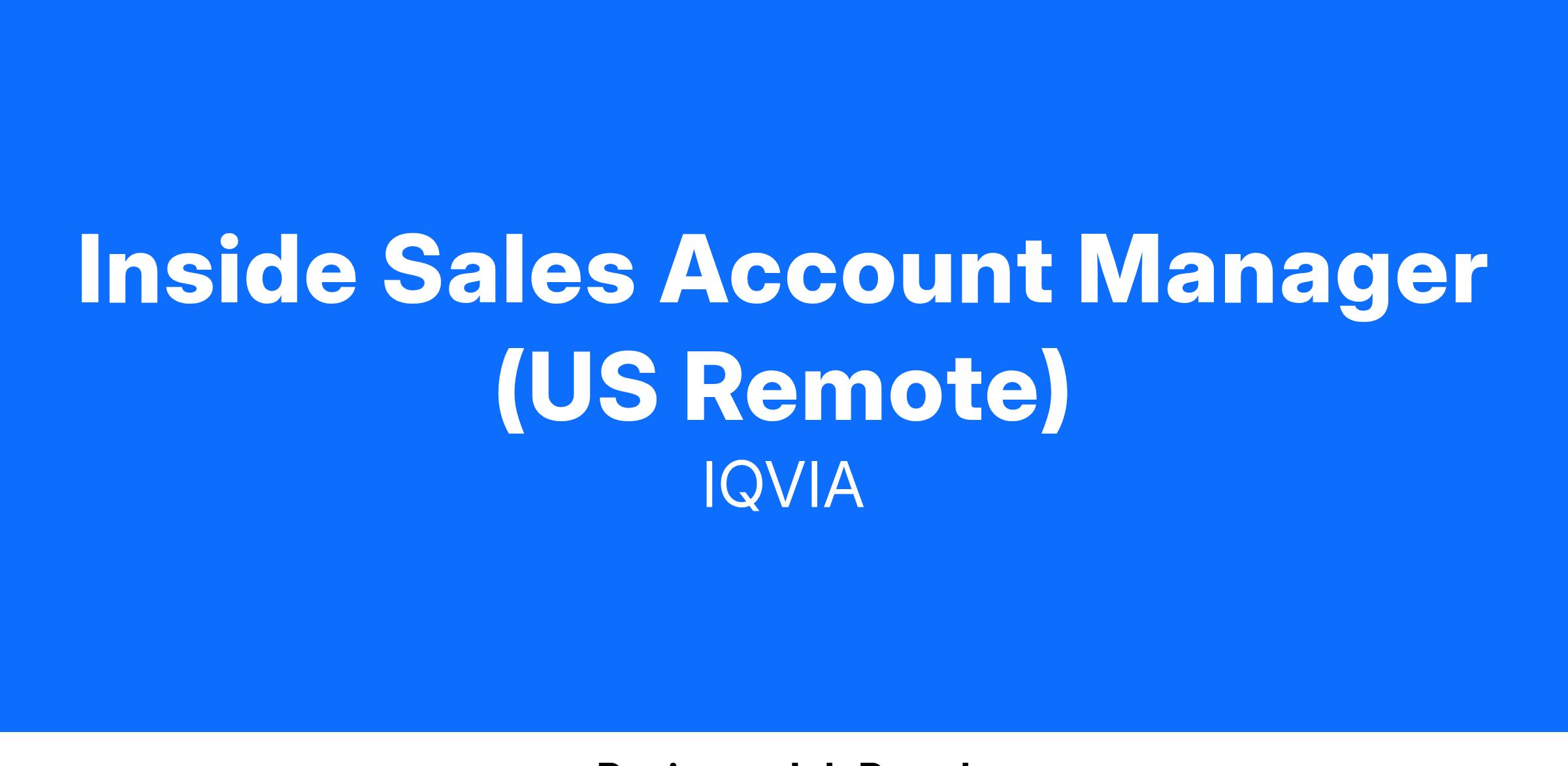 As a valuable member of the Inside Sales Team, focus on outbound calling with the objective of booking product demonstrations and closing business for our commercial solutions. This contributes directly to top line revenue growth and also IQVIA, to enhance prospective relationships and increase the volume of quality customer touch points. This position is fully remote/home based in US.