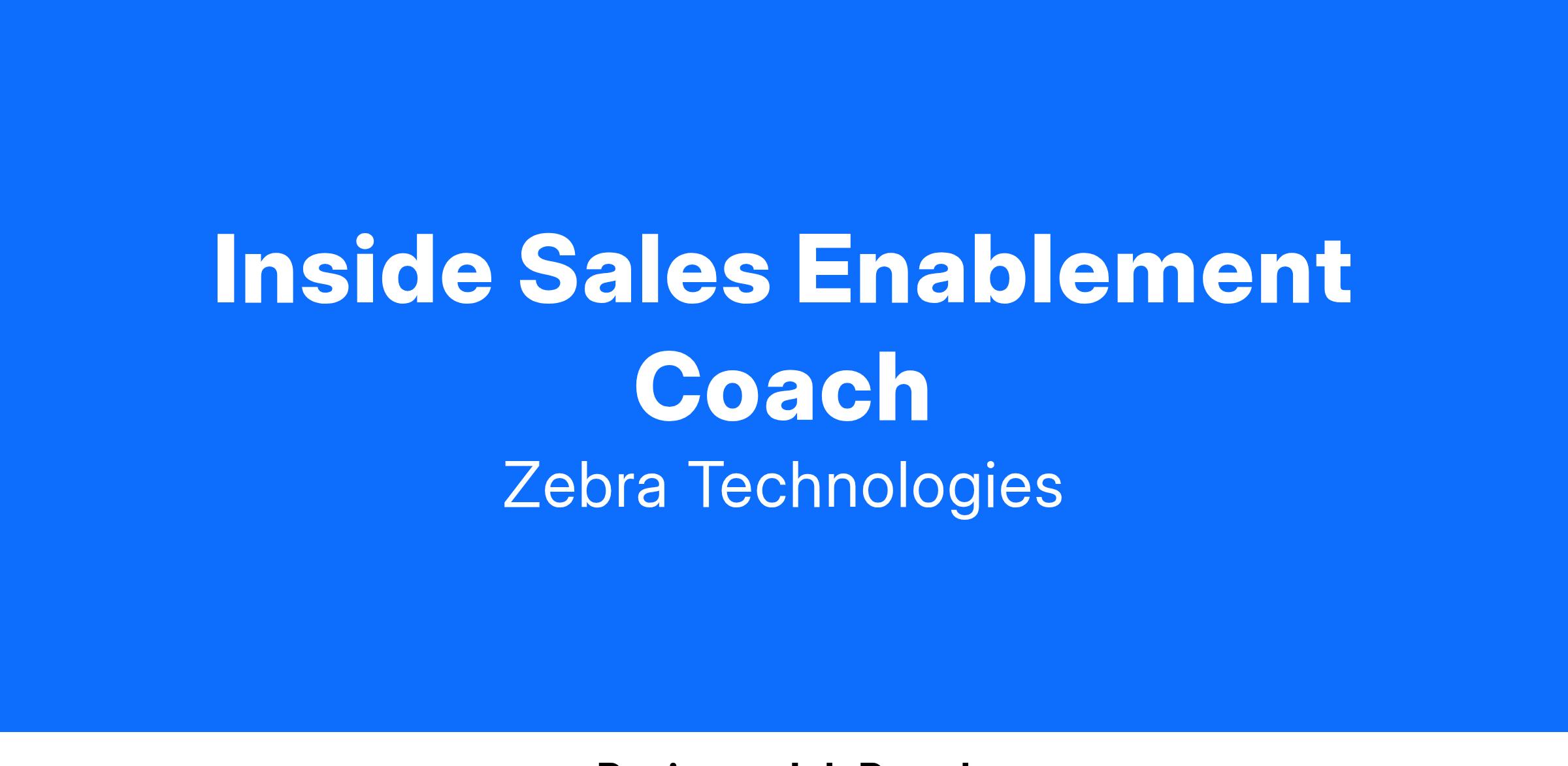 The Inside Sales Enablement Coach reports to the Director Learning and Development and is responsible for coaching the team of , onsite in the Regional Sales Hub. The role will support and drive skills and attainment against the assigned sales plan, leveraging high velocity selling motions/sales plays. Experience is both learning and Inside sales is a must