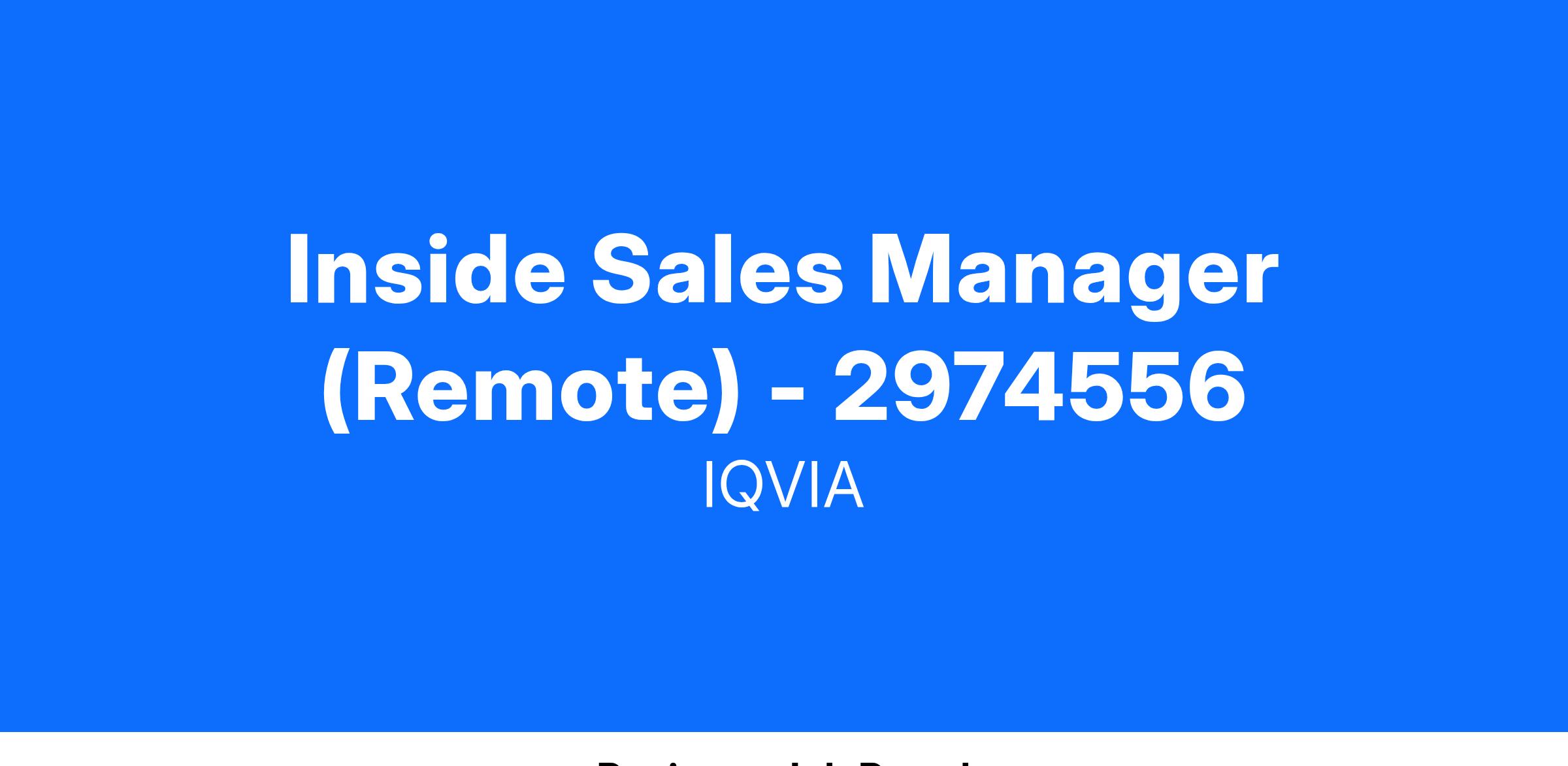 The Associate Inside Pharmaceutical Sales Manager (“AISM”) is a critical member of the IQVIA team. The AISM will be accountable for all aspects of program operations, including direct management and coaching of team members. AISMs are responsible for ensuring the team delivers results that meet or exceed agreed client goals, while fostering a culture that strives for operational and compliance excellence.