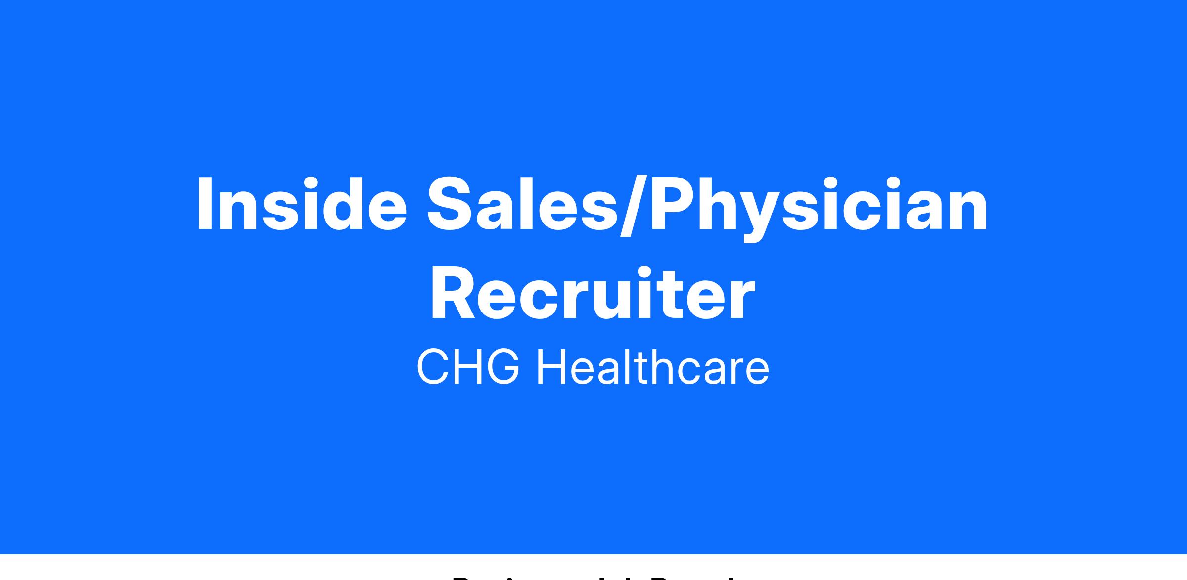 Have great earning-potential as an Inside Sales Consultant in the Physician Permanent Placement Division at CompHealth in Fort Lauderdale, FL. As an Inside Sales Consultant you will place physicians in permanent positions in facilities all over the country.