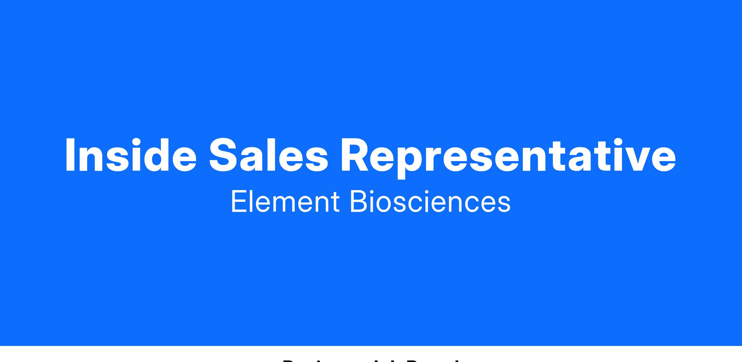We are seeking an experienced Inside Sales Representative who will play a pivotal role in driving and managing the sales of Element AVITI instruments, consumables and services within an assigned territory. This is an incredible opportunity for someone who is passionate about working closely with other commercial teams to prospect from a wide variety of sources, and to identify the owner of these qualified opportunities. We are looking for candidates with a solid background in pipelining and qualifying sales leads. Experience with capital equipment, sequencing consumables or a combination is a must. This role will report to the Senior Manager, Inside Sales and will be an on-site position based in San Diego.