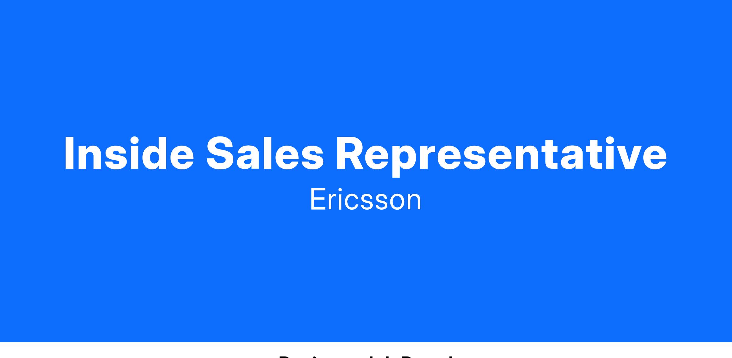Ericsson Enterprise Wireless Solutions is looking for a sales representative to sell to enterprise companies ranging from small to medium size via the telephone and internet in a defined geographic territory. The goal for the Inside Sales Representative is to grow our customer base and be responsible for the entire sales cycle, from prospecting through the booked sale. Come be part of a first-class sales team!