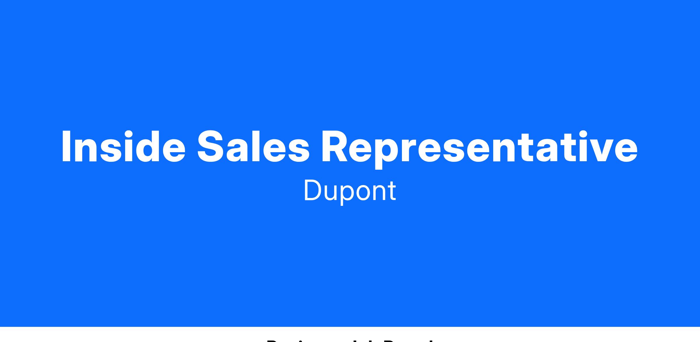 Inside Sales, Kalrez®, DuPont Industrial Solutions