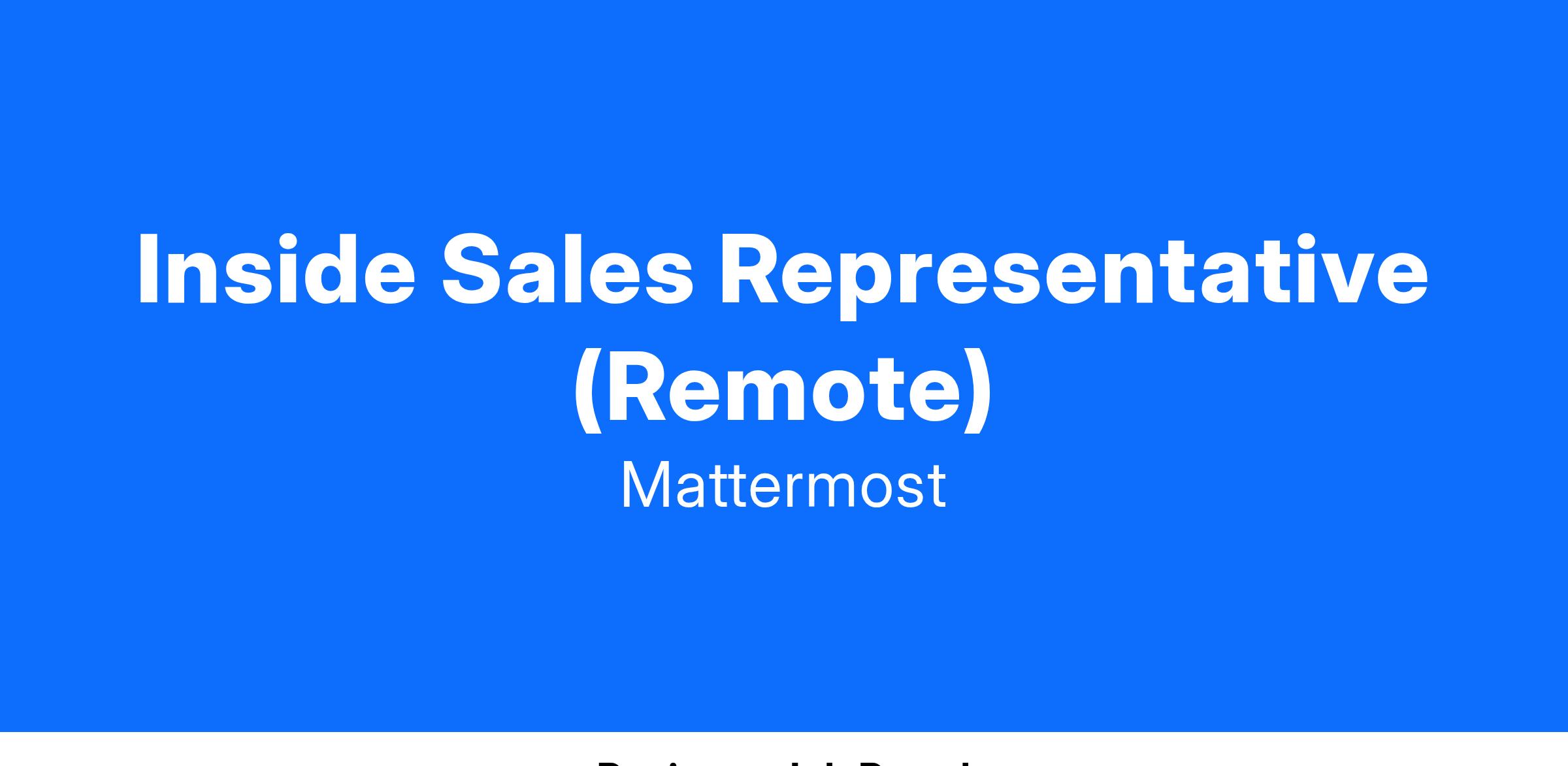 Mattermost is seeking an enthusiastic and driven Inside Sales Representative/Business Development Representative to join our team in the Americas region. In this role, you will be responsible for identifying and qualifying potential customers for our commercial/enterprise solutions. You will work closely with the sales and marketing teams to generate new business opportunities, build relationships with prospective clients, and contribute to the growth of Mattermost’s customer base.