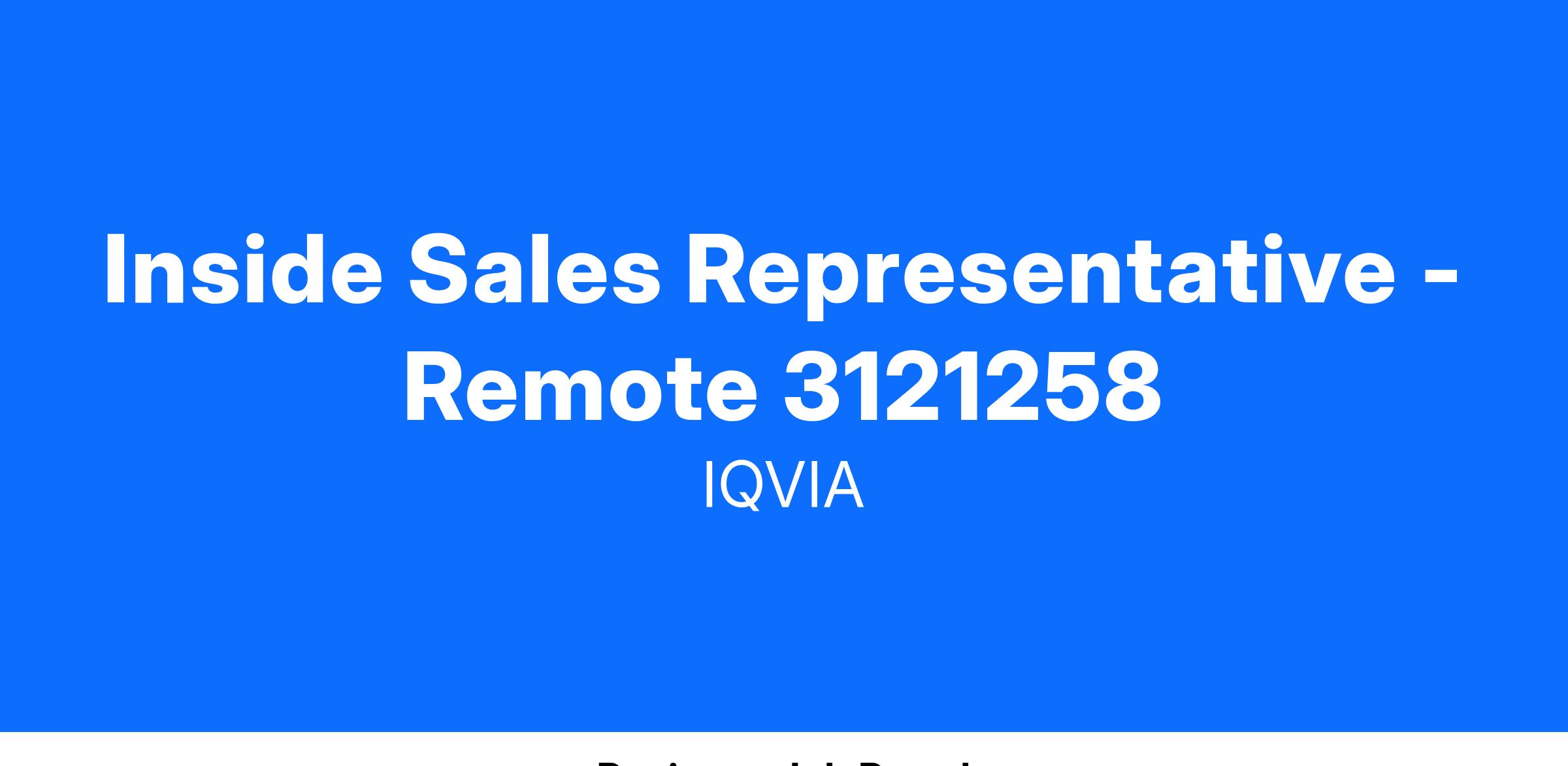 As the only global provider of commercial solutions, IQVIA understands what it takes to deliver nationally and internationally. Our teams help biopharma get their medicines to the people who need them. We help customers gain insight and access to their markets and ultimately demonstrate their product’s value to payers, physicians and patients. A significant part of our business is acting as the biopharma’s sales force to physicians or providing nurses to educate patients or prescribers. With the right experience, you can help deliver medical breakthroughs in the real world. If you are an energetic individual looking for an exciting, fast-paced environment, that allows you to work from home, we encourage you to join our team!