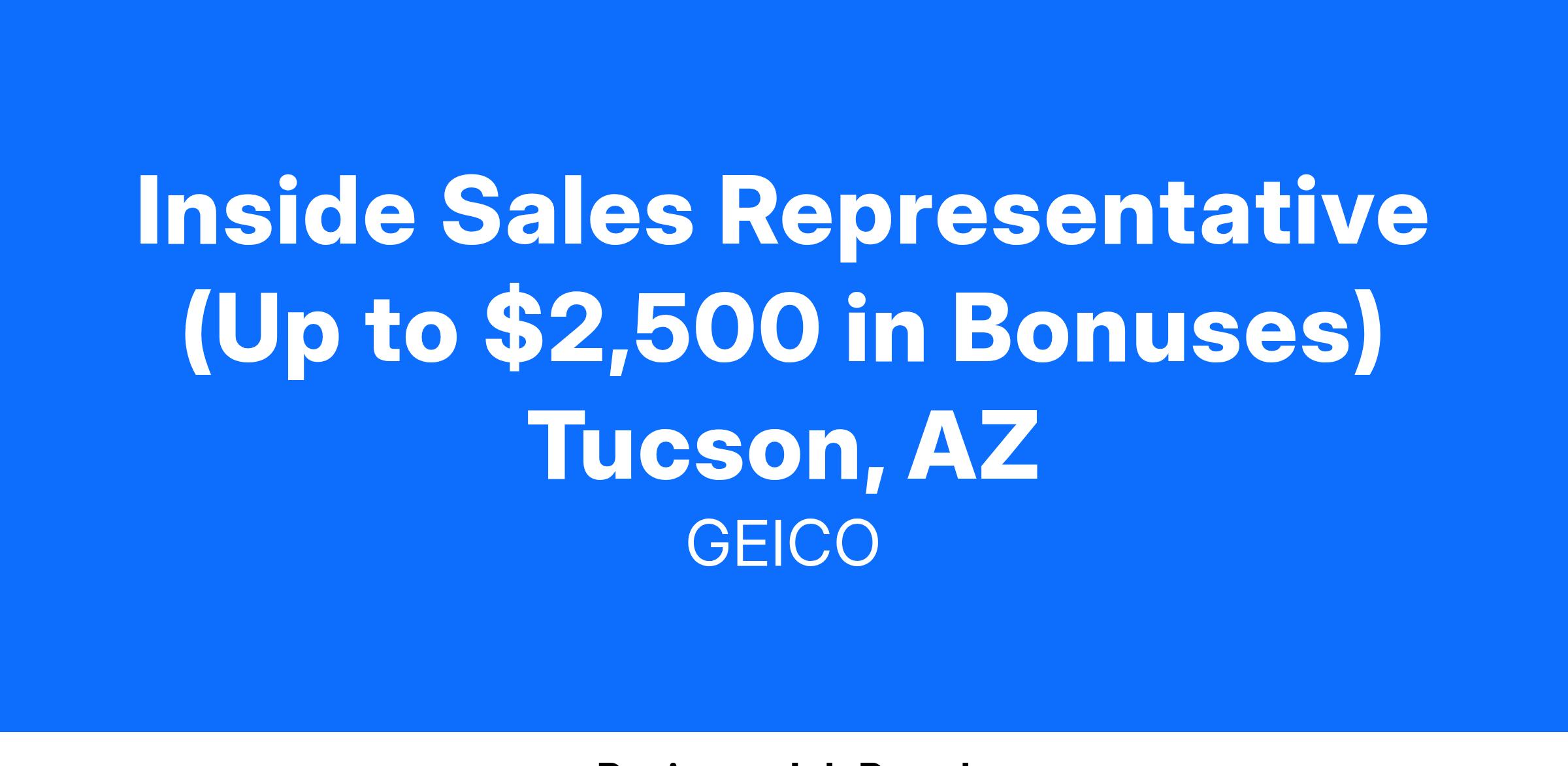 At GEICO, our associates are the heart of our company. We’re looking for Sales Representatives for our Tucson, AZ office who are driven, solution-oriented, and ready to contribute to our company’s success. We’re seeking outstanding associates who want to kickstart a fulfilling career with one of the most innovative auto insurers in the U.S.