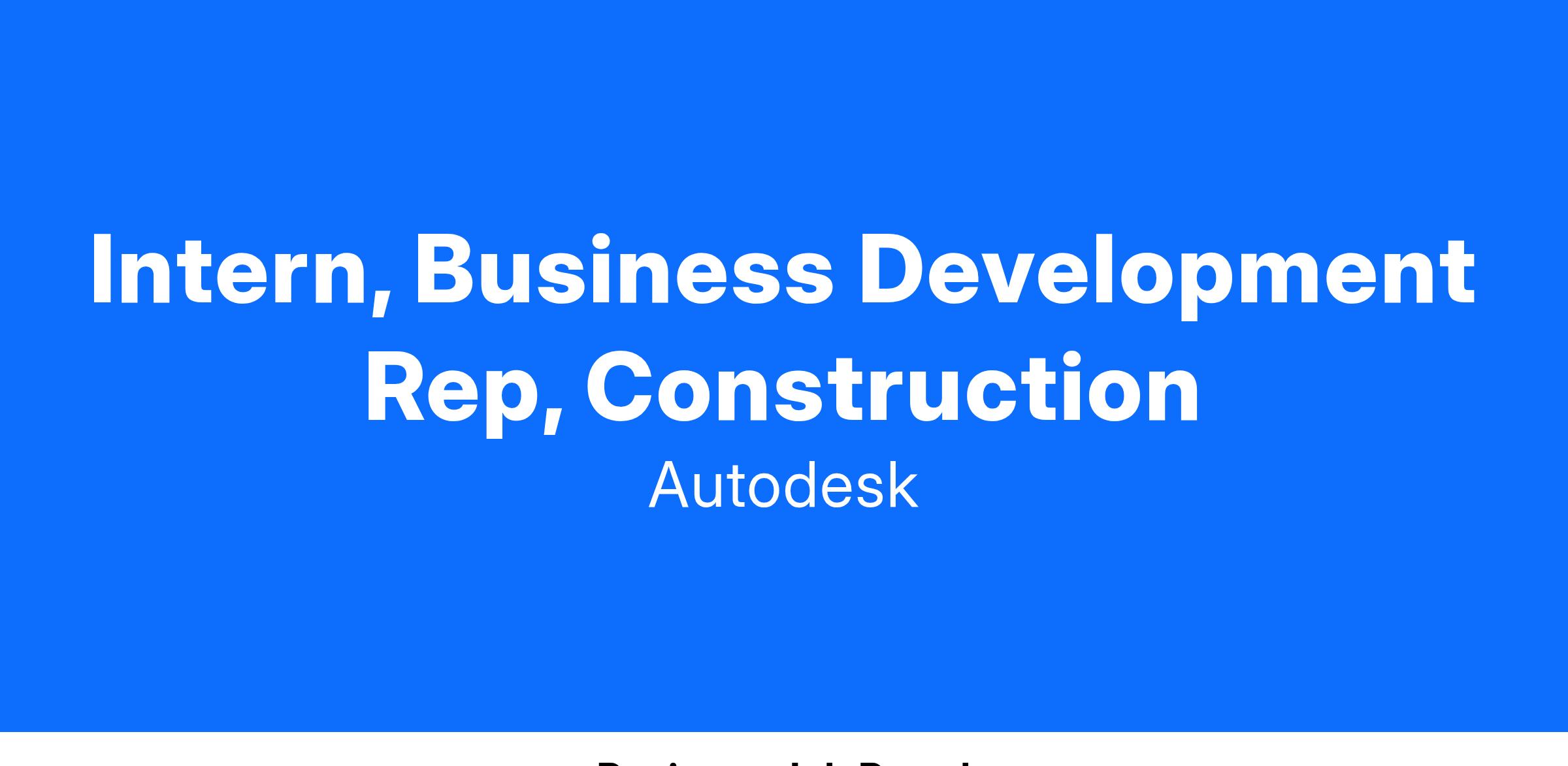 Autodesk is one of the most influential technology companies in the world. If you’ve ever driven a car, admired a skyscraper, used a smartphone, or watched a film, chances are you’ve experienced what our customers are building with our software. The Business Development Intern role is an exciting opportunity for aspiring sales and business leaders to gain hands-on experience in a fast-paced, growth-driven environment. As a key member of our team, you’ll support our MidMarket sales business while learning foundational sales skills that will serve as the building blocks for your future career in tech sales.