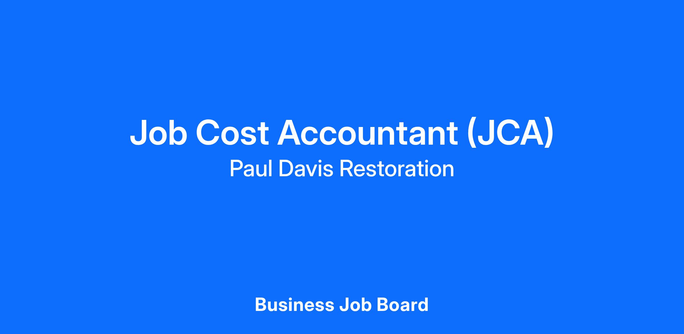 Why Join The Team? Paul Davis is an industry leader in restoration and reconstruction for insurance providers and commercial properties throughout the United States and Canada. We are growing locally and have career opportunities for individuals who want purpose out of their work. We love creating an opportunity for our team members, offering a variety of webinars for the Job Cost Accountant to stay motivated and updated on new technologies, regulations, procedures, etc.