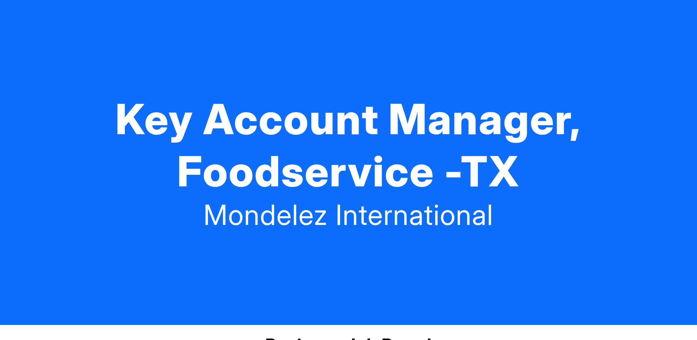The Key Account Manager (KAM) is a primary Field Sales role in Foodservice, assigned to a sales territory and responsible for growing MDLZ product share/consumption in that territory. Key responsibilities include calling on Non-Commercial operators including B&I, Health Care & schools K-12, as well as large independent operators and regional local chains. KAMs will also have direct sales responsibility for accelerating case growth within specific distributors in their regions. The KAMs primary objective is to execute MDLZ national & local snacking consumption programs, sell cases of new product launches, and sell cases of MDLZ Third Party finished desserts, including tracking results with associated Distribution. Effective collaboration with your counterparts, distribution team, and cross-functional partners are critical to this role.