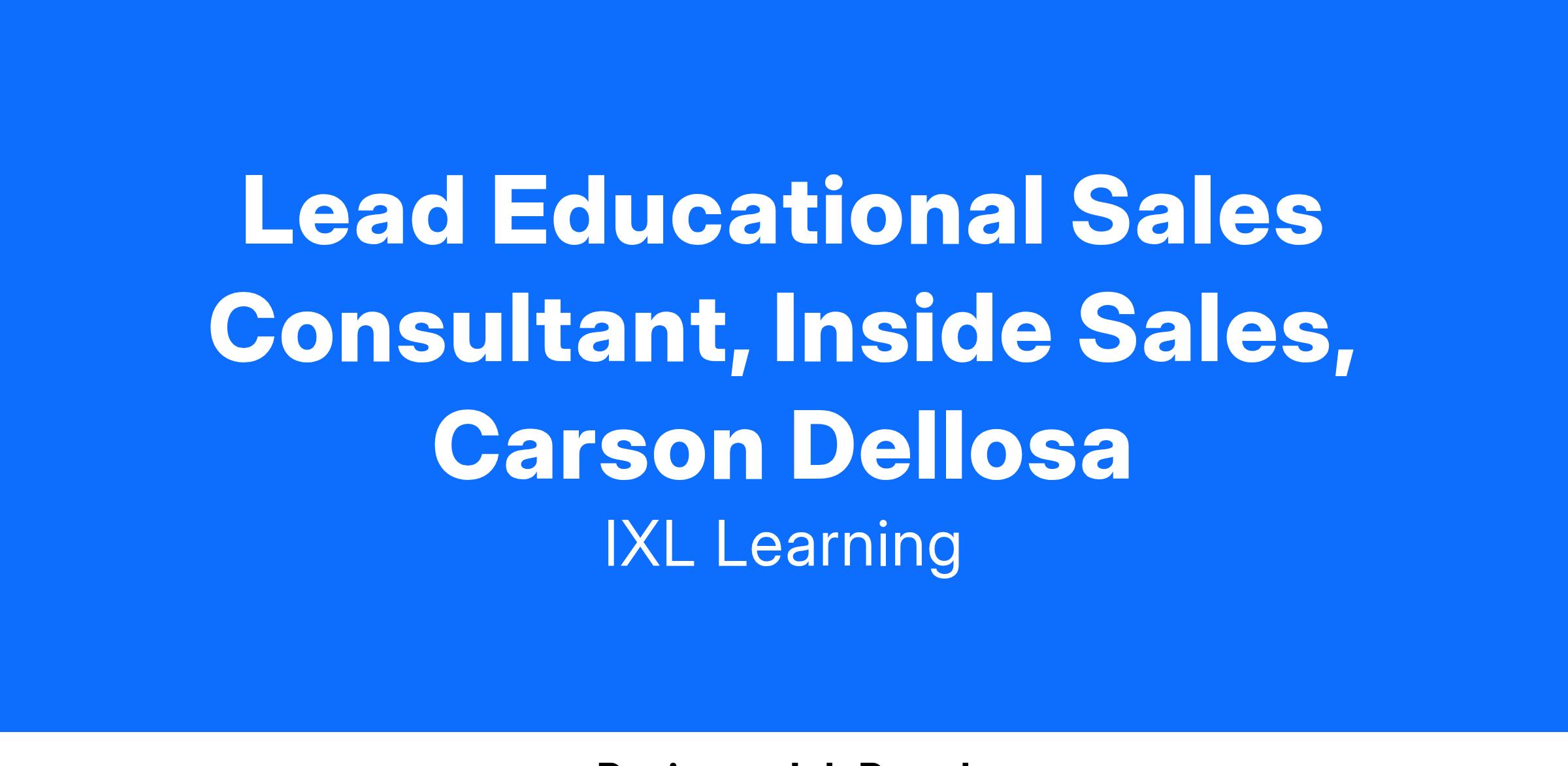 IXL Learning, developer of personalized learning products used by millions of people globally, is seeking an upbeat, focused, high-energy individual to lead our Carson Dellosa Inside Sales team. Carson Dellosa Education, now a part of the IXL family of brands, was founded in 1977 by two teachers. Over forty years later, we remain committed to creating educational solutions for children, teachers, and parents—wherever they are needed. #LI-TM1