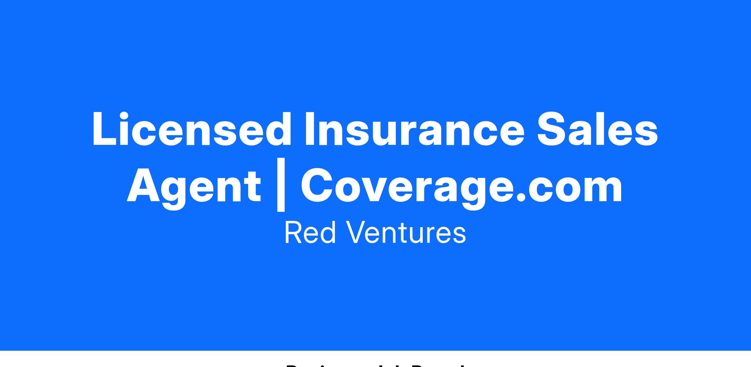 Red Ventures insurance business Coverage.com is seeking an experienced Licensed Insurance Agent to join our Coverage Insurance Agency in the Charlotte, NC area. In this role, you’ll take inbound calls from customers looking to purchase auto, home, and other personal lines insurance products.