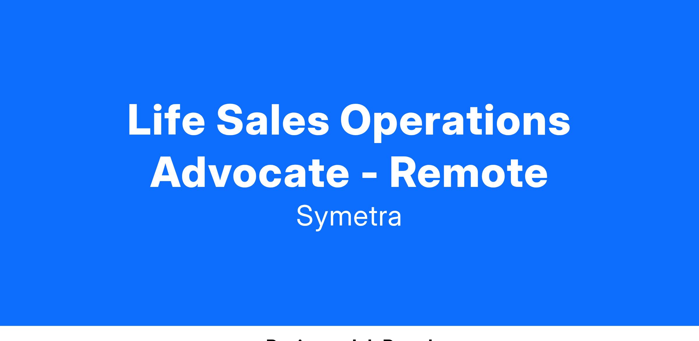 Symetra has an exciting opportunity join our team as a Life Sales Operations Advocate!