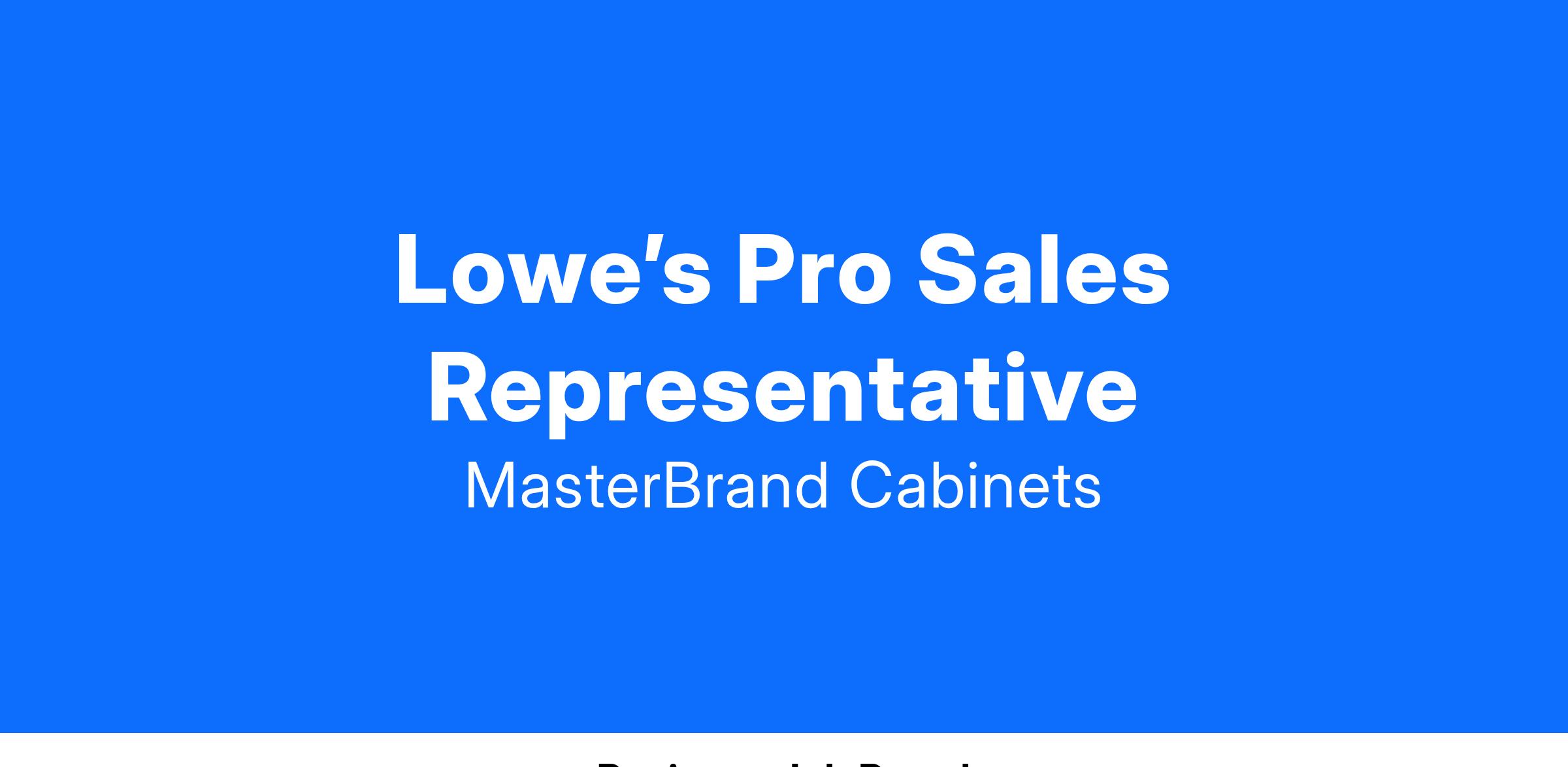 Grow & maintain sales of Masterbrand products with Lowe’s Pro customers.