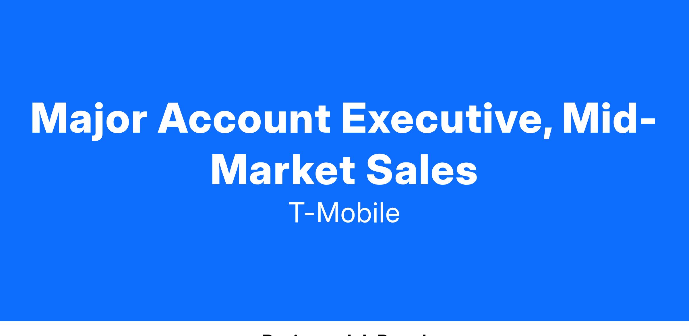 As a Major Account Executive, you will connect with executives to sell innovative solutions that will transform their business. You're passionate about technology and know your customers' specific challenges and business objectives. You understand how to build a custom solution without which your customers can't live. You excel in dynamic environments and provide excellent customer service. This role will meet and exceed monthly sales quota objectives by acquiring and growing an assigned module of targeted mid-sized prospects and base customers. Industry-leader will sell products, services, and solutions to gain new business through prospecting, cold-calling, networking, and generating referrals. Industry-leader will analyze customer needs and use solution-based selling techniques to demonstrate the value of T-Mobile products and services. Tailor customer recommendations to negotiate and close business.