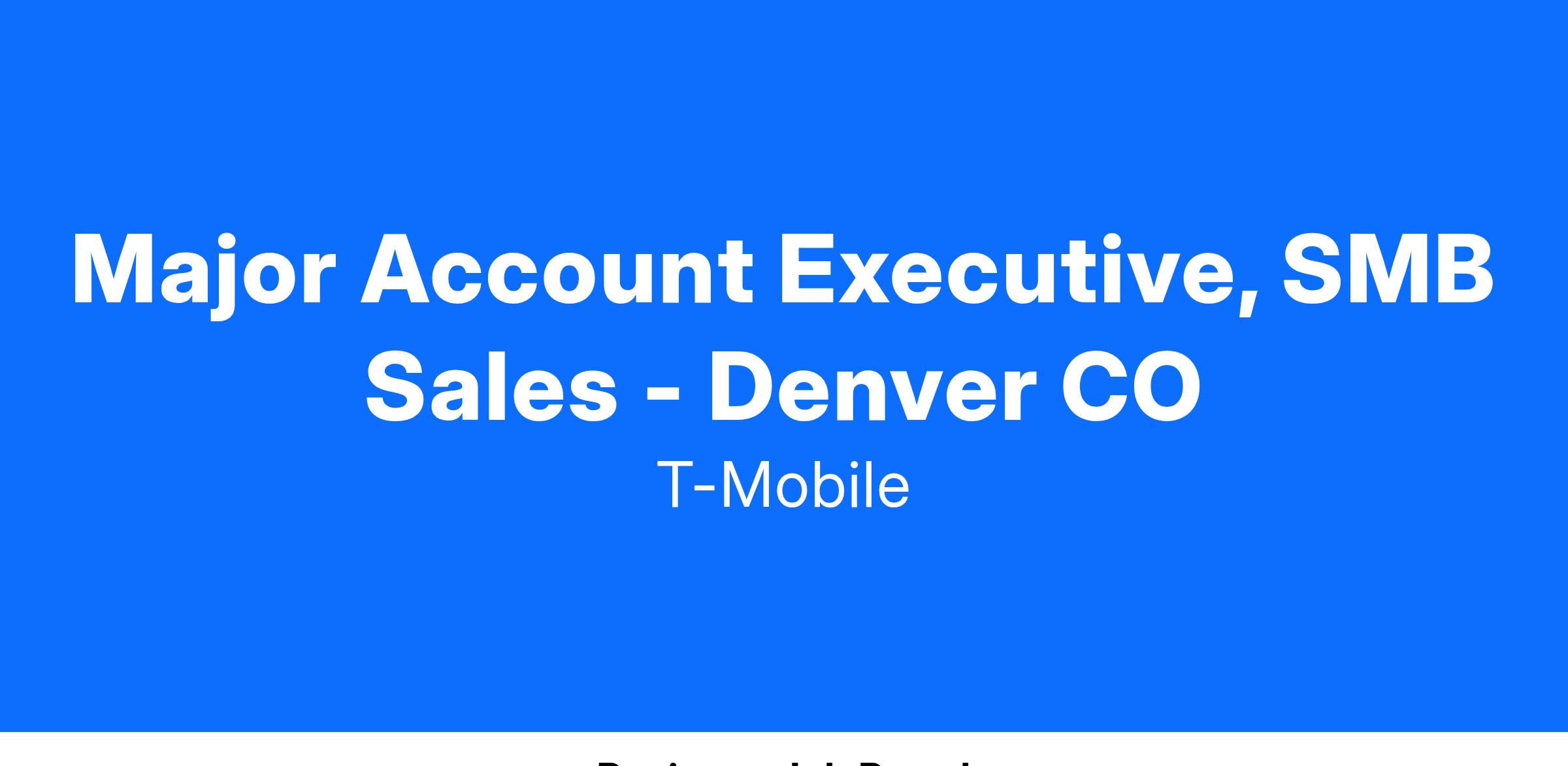 Serious ambition welcome. Come build stellar relationships with customers as you offer them T-Mobile's unparalleled product and service line. This is a true hunter role! We're looking for results-oriented, persistent, outstanding sales professionals to bring our products and services to underserved markets. In the process, we can turn the wireless industry on its head, un-limit what customers expect, and ignite your true potential.Job Responsibilities: