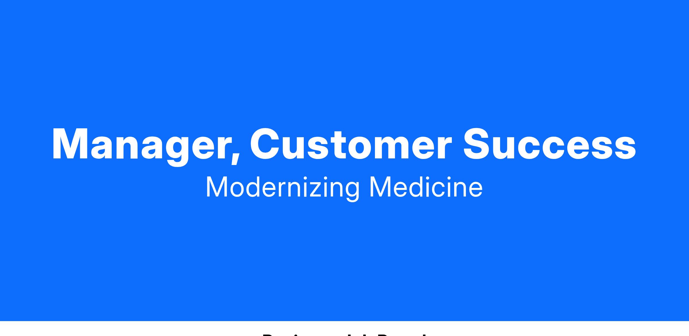 ModMed is hiring a driven Customer Success Manager to join our positive, passionate, and high-performing Customer Success team focused on collaborating with leadership and teams across the organization to develop strategic plans and objectives aligned with specific KPIs within our Modmed verticals. This is an exciting opportunity to oversees a team of Customer Success Managers (CSMs) who work with Named Enterprise and Strategic clients to enhance product adoption, manage risks, and identify upsell opportunities while delivering a world-class customer experience within a fast-paced Healthcare IT company that is truly Modernizing Medicine! The focus of this role is to refine current processes to support scalability and growth, as well as leading a team that embodies the values of Modernizing Medicine.