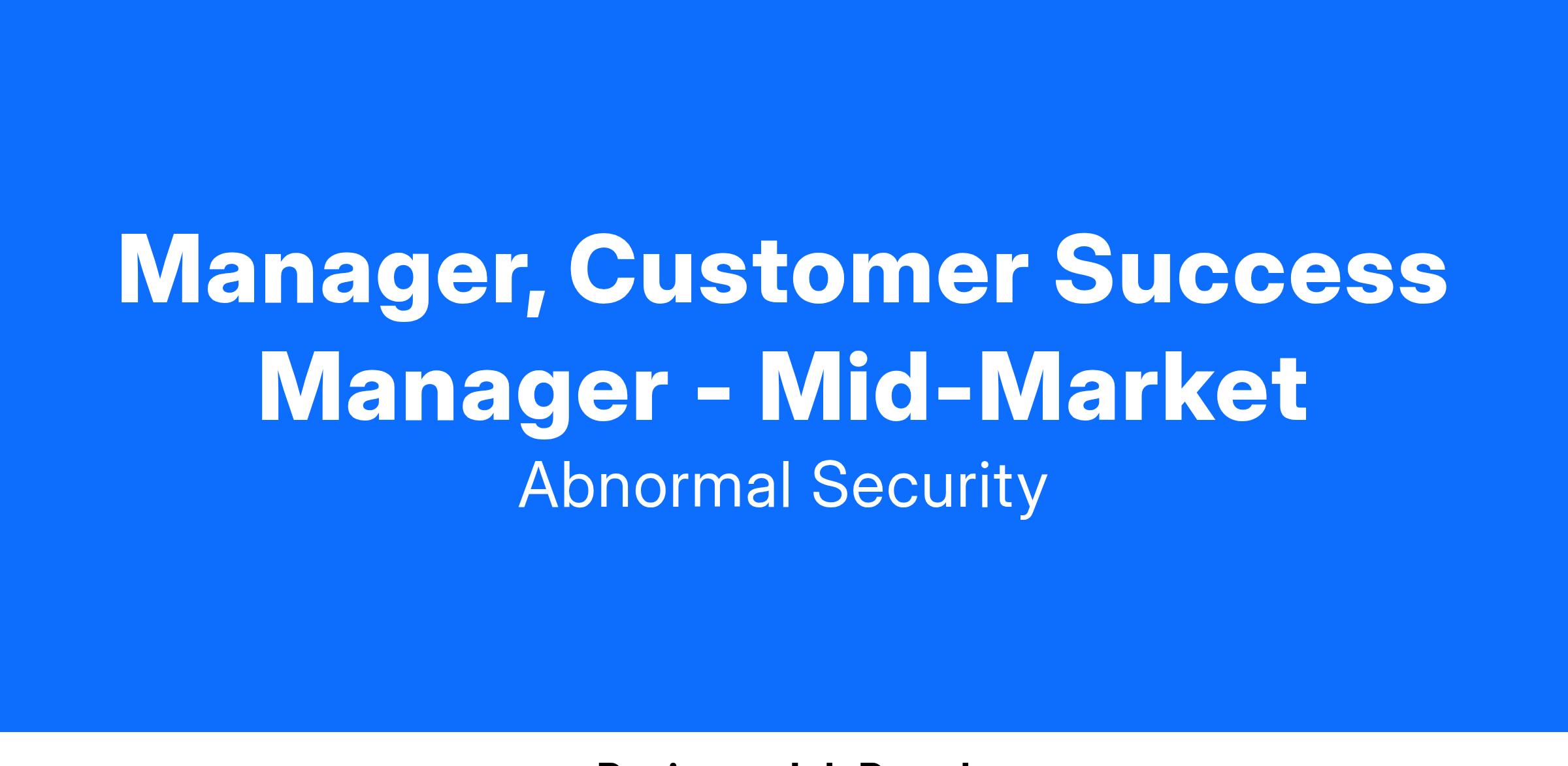 The Manager of Customer Success - Mid Market will play a critical role in driving customer adoption, retention, and expansion across our Mid Market customer base globally. This individual will have a dual focus on strategic account management and technical product expertise, ensuring that our team of Customer Success Managers (CSMs) and Renewal Managers (RMs) deliver exceptional, proactive service to customers at all levels of engagement.Β