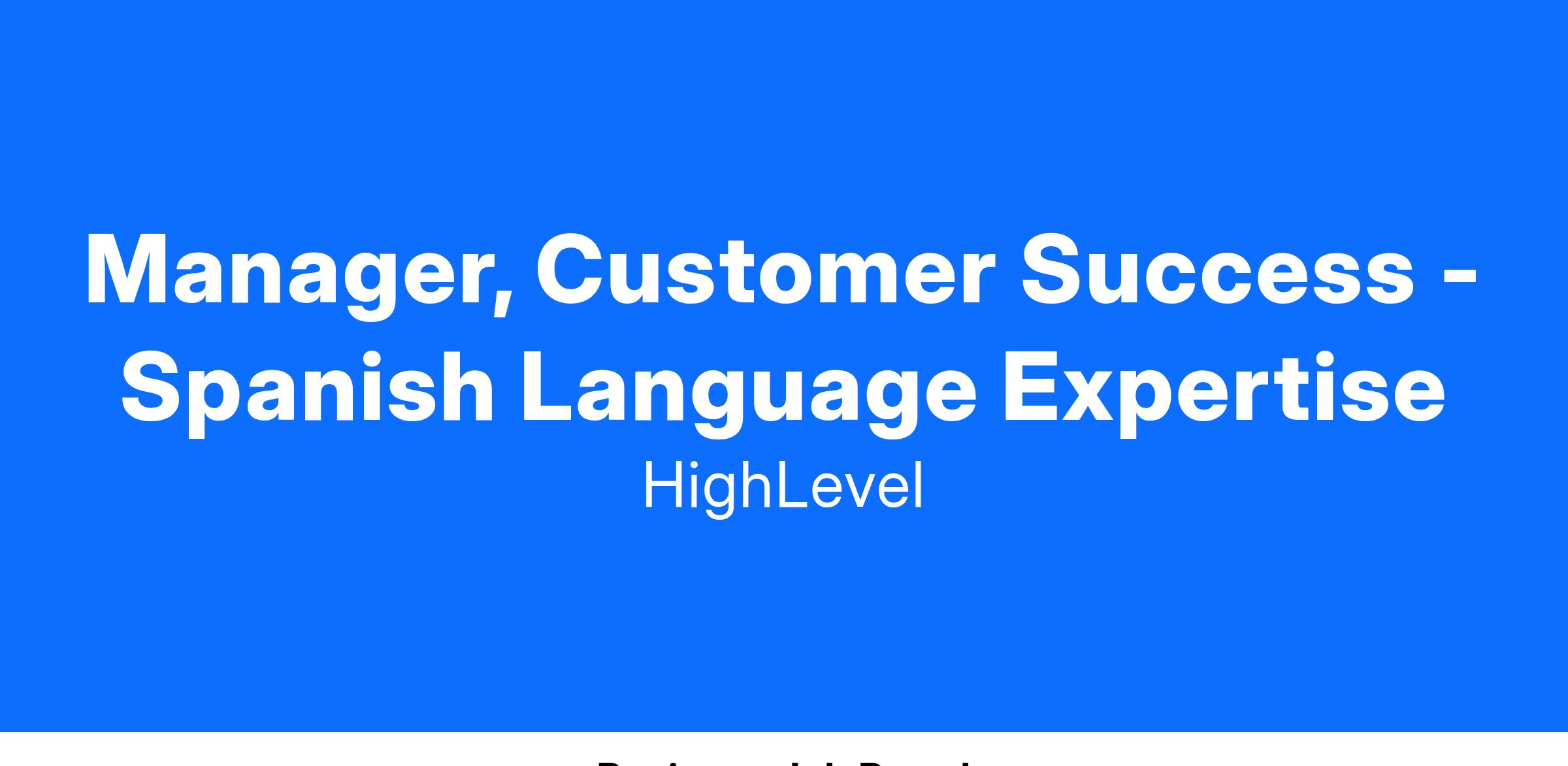 The Manager of Customer Success is responsible for leading and inspiring the Customer Success team. The Manager of Customer Success is the key champion for ensuring HighLevel customers’ end-to-end lifecycle experience is exceptional. The goal is to maximize customer lifetime value through retention and own the “voice of customer” as part of HighLevel’s overall customers for life vision. The manager of Customer Success will be focused on ensuring the highest levels of customer success and end-user adoption as measured by retention, renewals and CLTV, and advocacy of HighLevel’s product and services. The Manager of Customer Success is a central role raising the voice of customer to a roar within HighLevel utilizing internal “HealDesk"; processes and communications