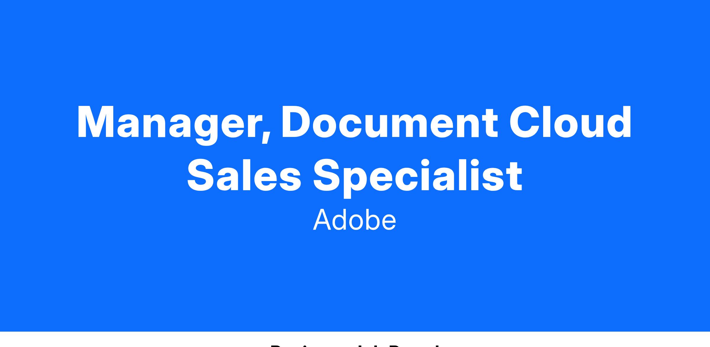 Available to travel 50% Adobe believes in hiring the very best and that’s why our dynamic working environment has received awards throughout the globe