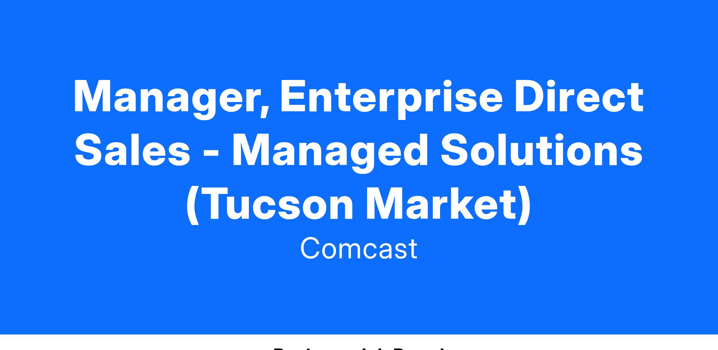 Responsible for effectively managing and monitoring all sales of integrated communication structure to enterprise customers such as multi-site regional businesses or national accounts in an effort to maximize sales revenues and meet corporate objectives on a consistent basis. Assures optimal sales team staffing and training readiness of sales professionals. Develops financial and operational objectives. Ensures operational plans are aligned with business objectives. Contributes to functional strategy development. Has a greater degree of impact on business results and typically manages one or more groups of professional employees.Job Description
