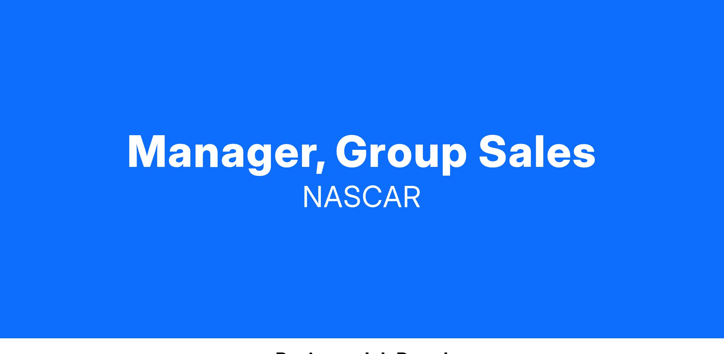 Richmond Raceway business unit seeks a positive, motivated, organized individual looking to lead one of the hardest driving sales teams in sports. The Group Sales Manager is tasked with leading and driving ticket revenue.
