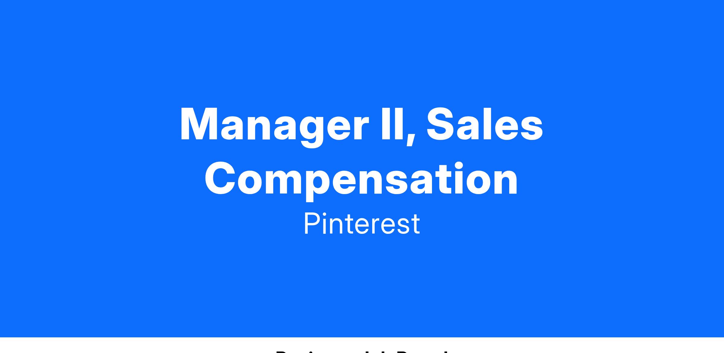 As a Manager II on the Sales Compensation team, you will lead the Sales Compensation team within Corporate Finance. You will work with our Chief Revenue Officer (Head of Sales) and Sales/Finance leaders to monitor business health, identify underlying trends and make strategic business decisions for Pinterest. In this role, you will lead the global sales incentive program, which impacts 850+ sellers and is a critical role that sits at the center of how Pinterest executes on its global strategy. You will work closely with other teams across Pinterest (Sales Strategy & Operations, Sales Finance, Accounting, IT, Internal Audit, Human Resources and Compensation) as well as key executives (CRO, CFO, VP Finance) to help drive clarity around our sales performance and manage our variable compensation structure to ensure we are delivering on key strategic objectives. This role will report into the Senior Manager of Corporate Finance.