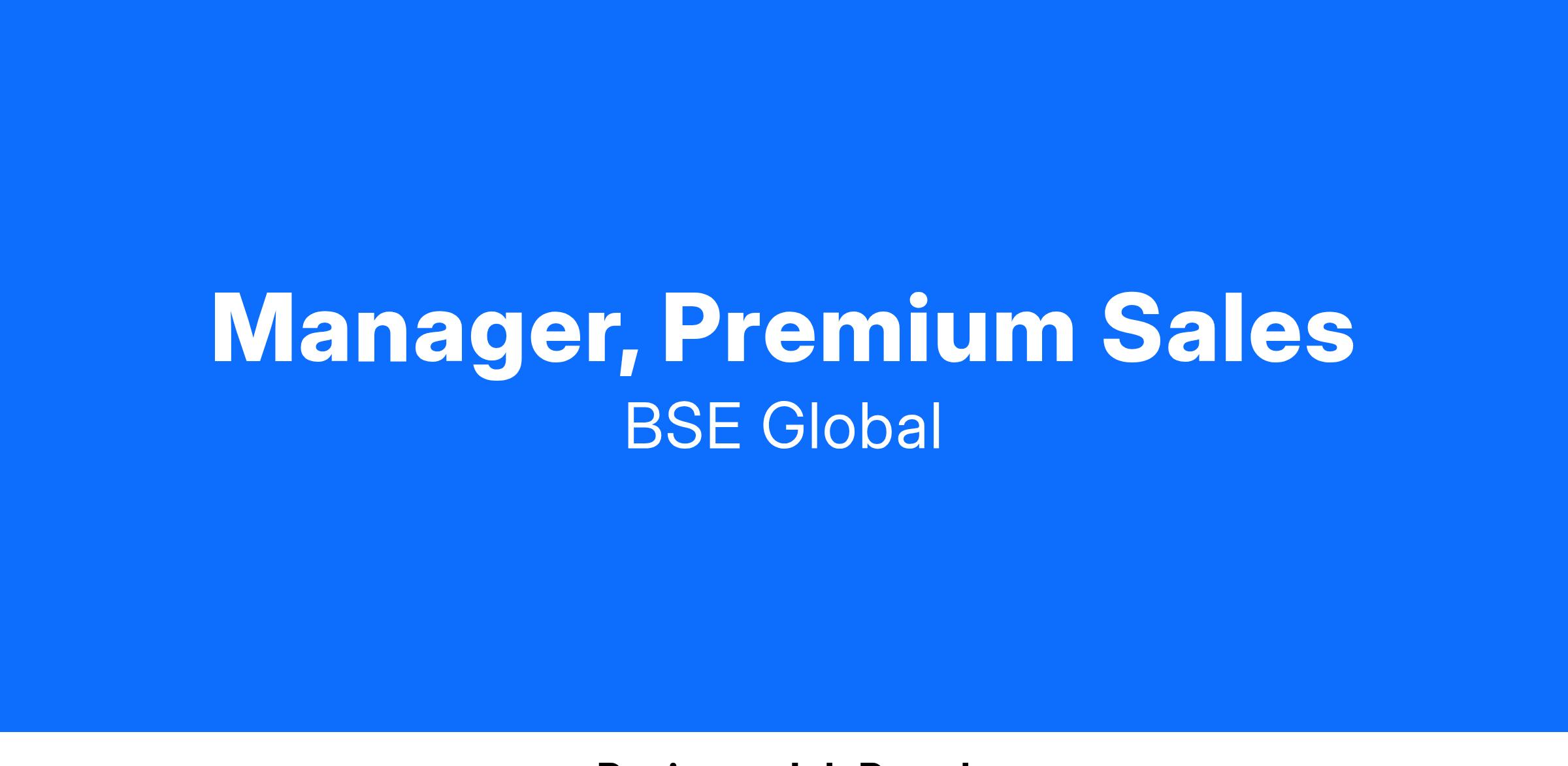 The Manager, Premium Sales reports to the Director, Premium Sales.
