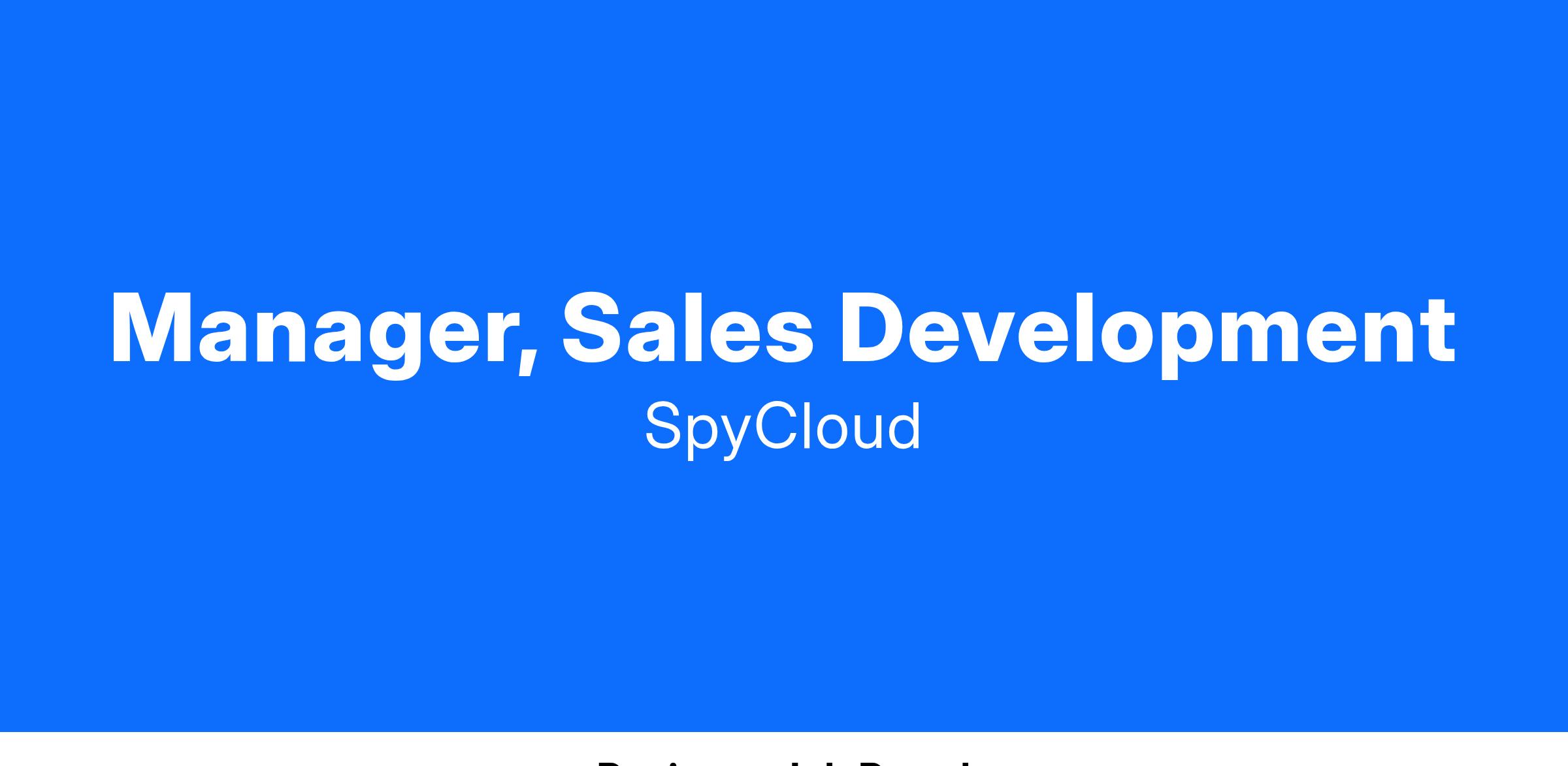We are looking for a Manager, Sales Development to act as player-coach of our US SDR team. They will oversee and contribute to the creation of qualified sales opportunities and own operational and administrative tasks that create efficiency and scale across the team. Cybersecurity is an exciting, ever-changing space, and SpyCloud in particular is a special place to work. We are at the forefront of the fight to disrupt the cybercriminal economy and make the internet a safer place to do business. If you’re driven to connect our solutions with decision makers that need help protecting their employees, customers, and supply chain – please apply.