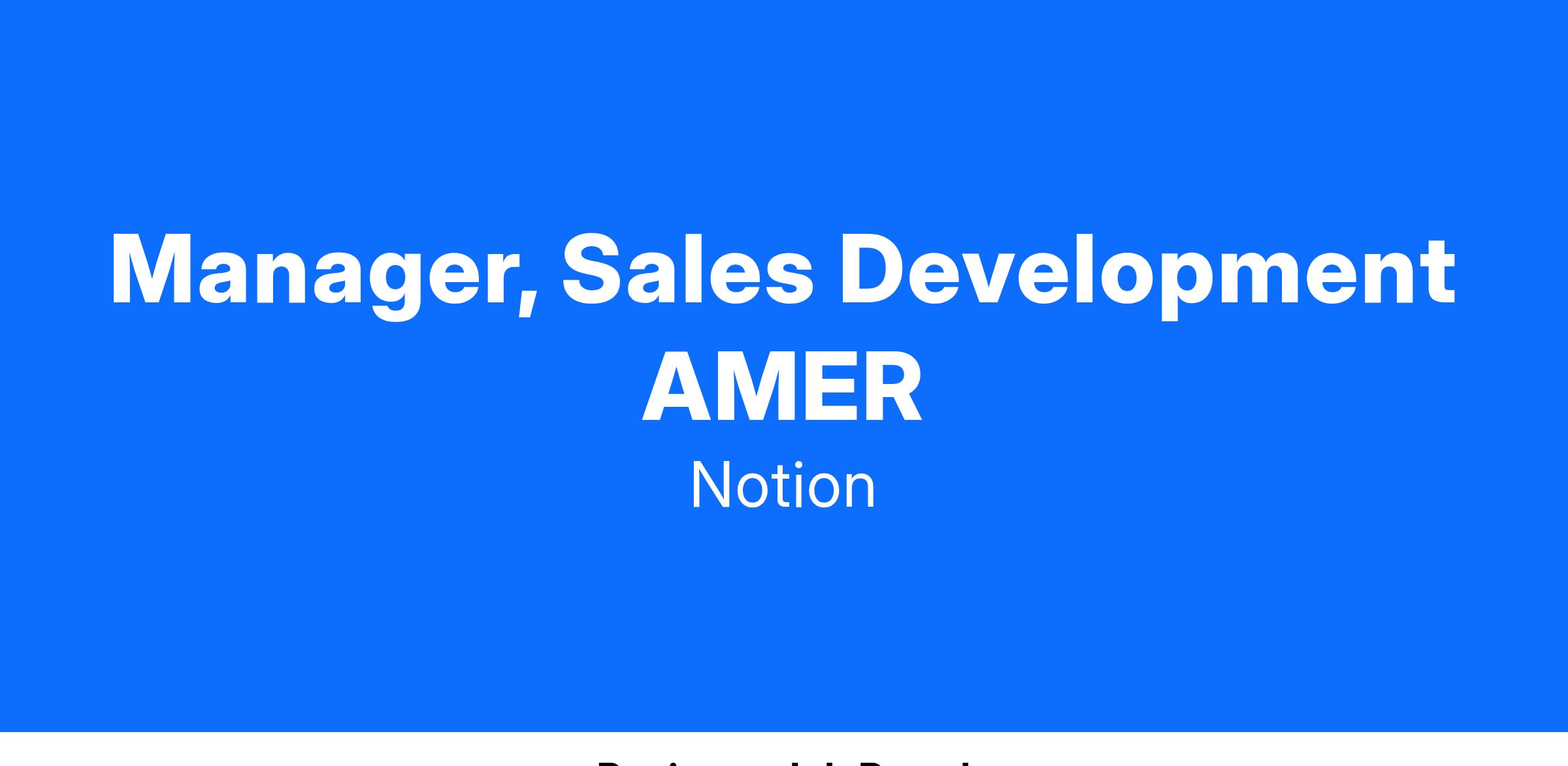 Notion is looking for an AMER Sales Development Manager that will recruit, develop, & lead a highly driven and hardworking team of Sales Development Representatives (Inbound) & Business Development Representatives (Outbound). We are looking for someone who is passionate about coaching & elevating the craft of new sellers at Notion. The Sales Development team is the first interaction with prospective Notion customers and is key to the success of our Sales organization!