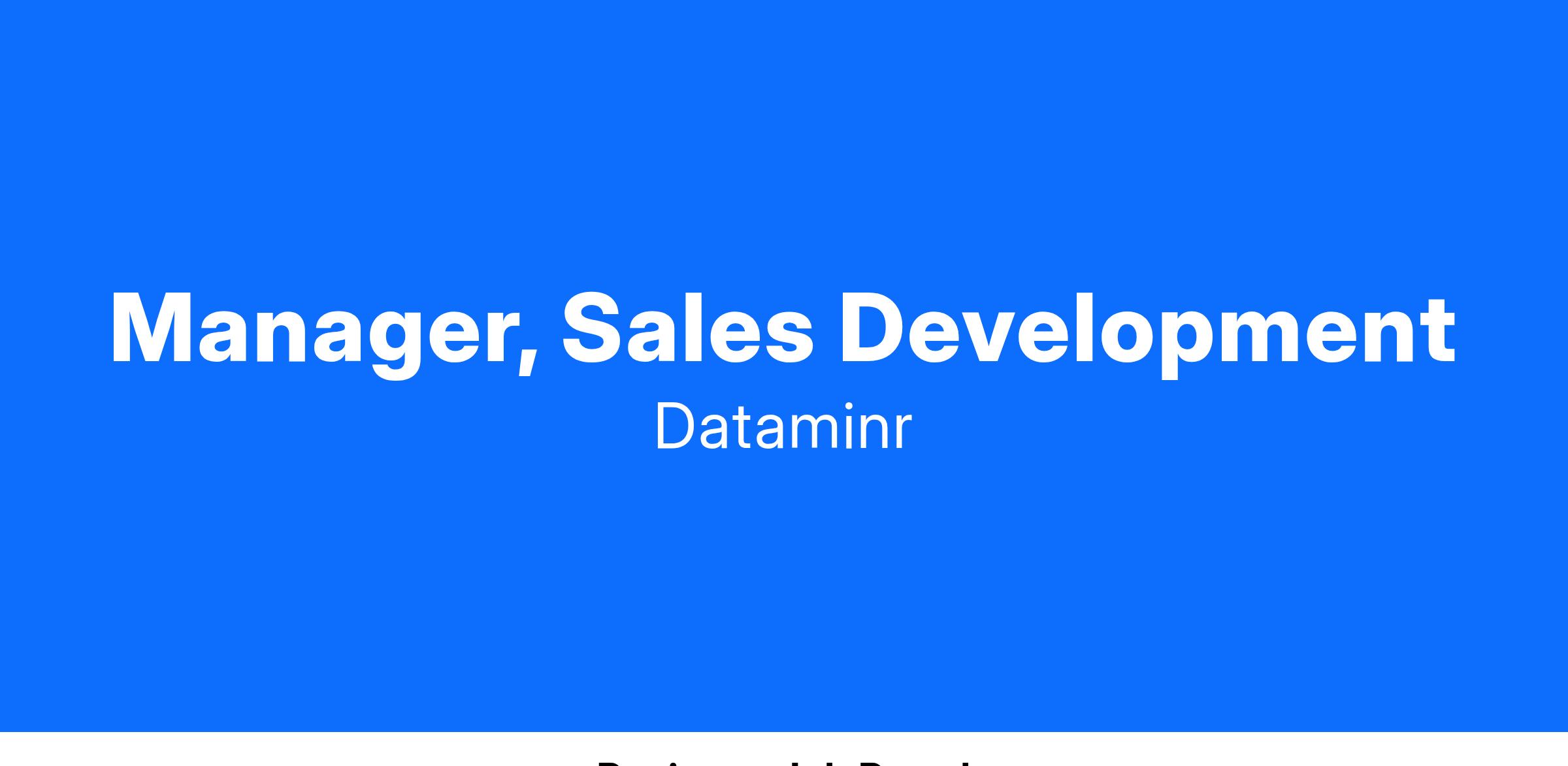 You're a highly motivated self-starter with the ability to multi-task within a fast paced environment. You're passionate about tapping into new markets and stirring up interest with new prospective clients. You’re a team player who loves mentoring and leading by example - you’ve had some formal experience supporting other SDRs and you’re excited about management.At Dataminr, we are over 600 talented individuals, spanning seven global offices, united by our passion to use AI for the greater good and be agents of positive change in our company and in our communities.