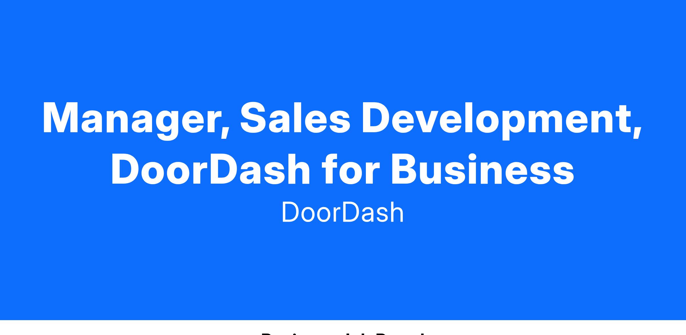 Sales Development plays an integral role in DoorDash for Business’s continued growth in the US and Canada. In this role, you’ll lead a team of inbound & outbound SDRs responsible for targeting, engaging, qualifying and scheduling meetings with enterprise prospect organizations in the US & Canada. We are looking for a leader who can create, implement and manage strategies that generate new leads, build pipeline, and help achieve quarterly sales targets. A leader who is excited to build & develop a strong team culture and is eager to provide mentorship and coaching that uplevels their team, helping them to prepare for future roles.