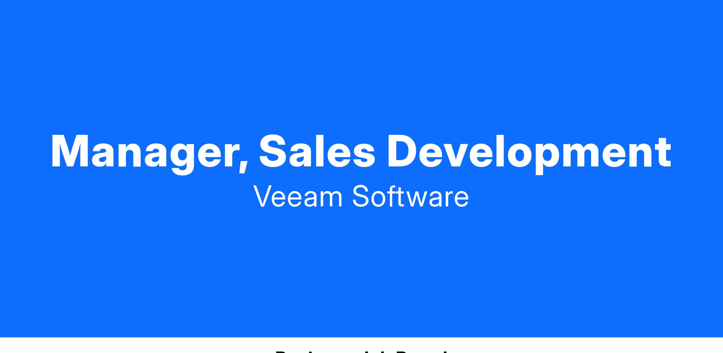 Become a vital part of our company's success! We're on the lookout for a Sales Development Manager who will be responsible for managing and leading a team of Sales Development Representatives by overseeing pipeline generation, operations and growth strategies for new and existing customers of Veeam Software. Being a part of our sales force you'll play a key role in contributing to our growth and promoting innovative technology solutions.