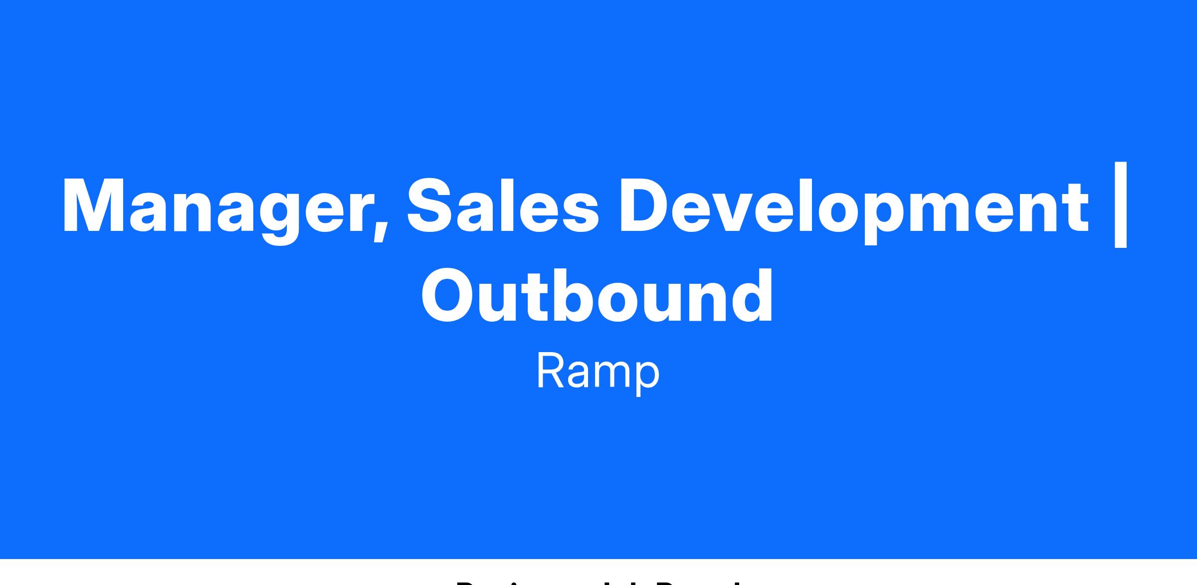 You will be a front-line manager to a group of Sales Development Representatives (SDRs) who are responsible for outbound prospecting and pipeline generation. You will be responsible for 1:1 coaching and mentoring, as well as developing strategy and working closely with leaders across Sales, Marketing, Product, and the executive team to drive positive outcomes for this segment. As a key member of the sales leadership team, you will have the opportunity to help build and refine Ramp’s sales development motion.