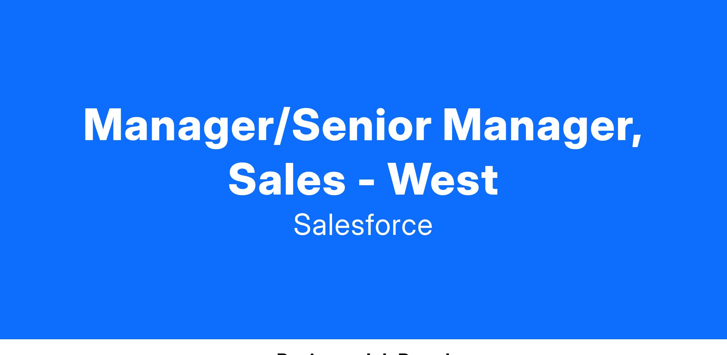 Depending on the segment, the years of experience and skills needed to be successful will vary from 3+ yrs of sales leadership experience developing a team of seven or more quota carrying sales people. In addition, a bachelor's degree is strongly preferred.