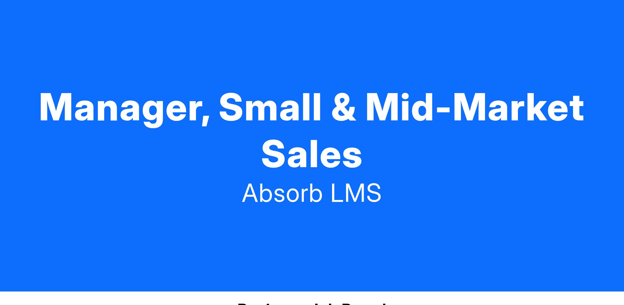 With our recent valuation of $500M USD, Absorb is poised for incredible growth and we need your expertise. As our new Manager of Small & Mid-Market sales, you will support our team as they emerge into an exploding segment that has not yet been tapped into by Absorb. Did we mention that you get to sell Absorb�s cutting-edge LMS?