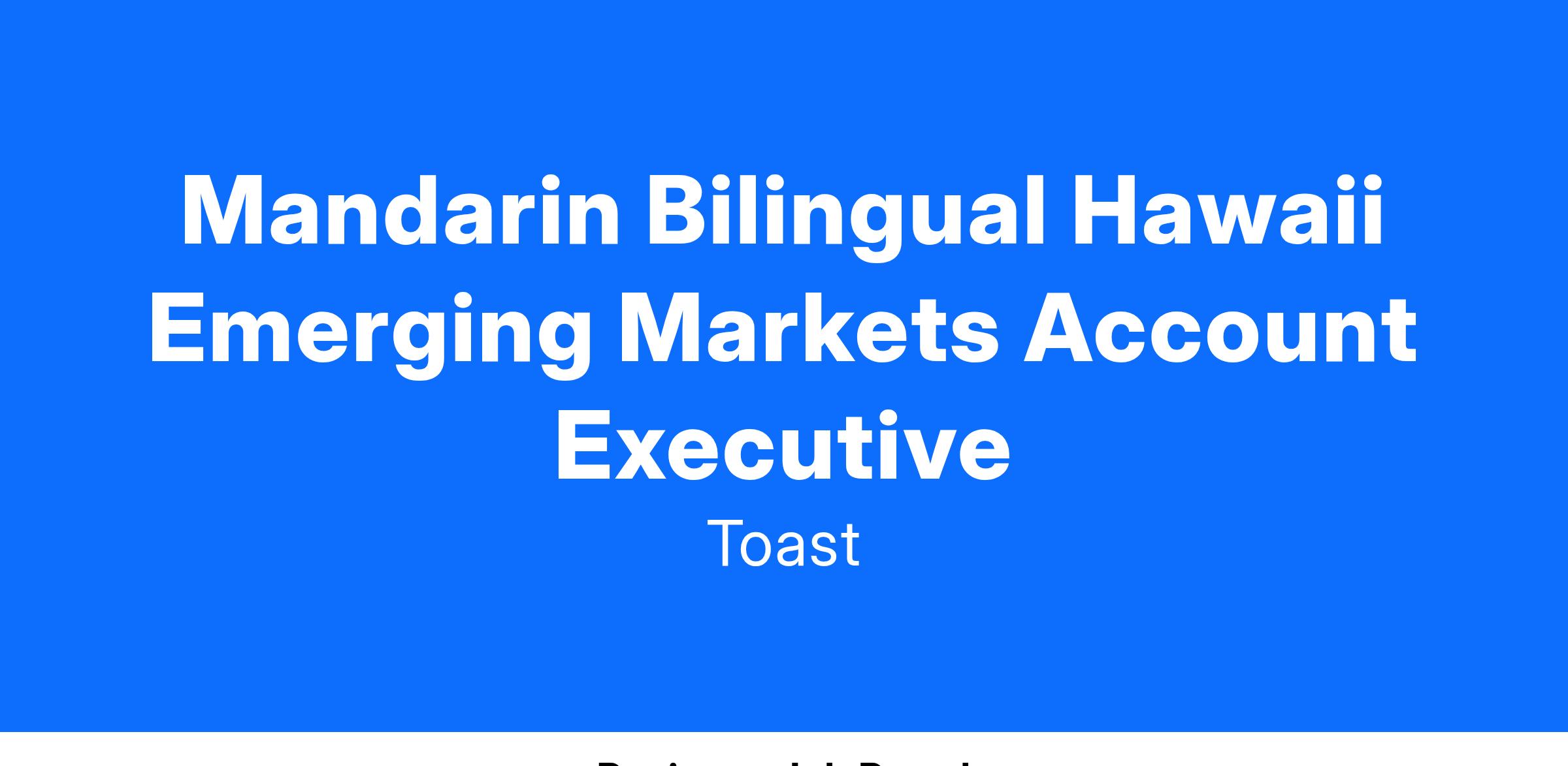 Your Mandarin skills will be used on the job to communicate with Mandarin-speaking customers and prospective customers, while your English language skills will be used primarily for communicating with other employees at Toast. As with most internal business at Toast, the job application and interview process for this role will be conducted primarily in English.