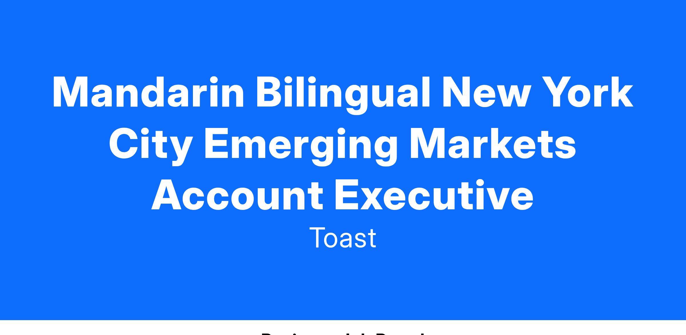 Mandarin Bilingual New York City Emerging Markets Account Executive