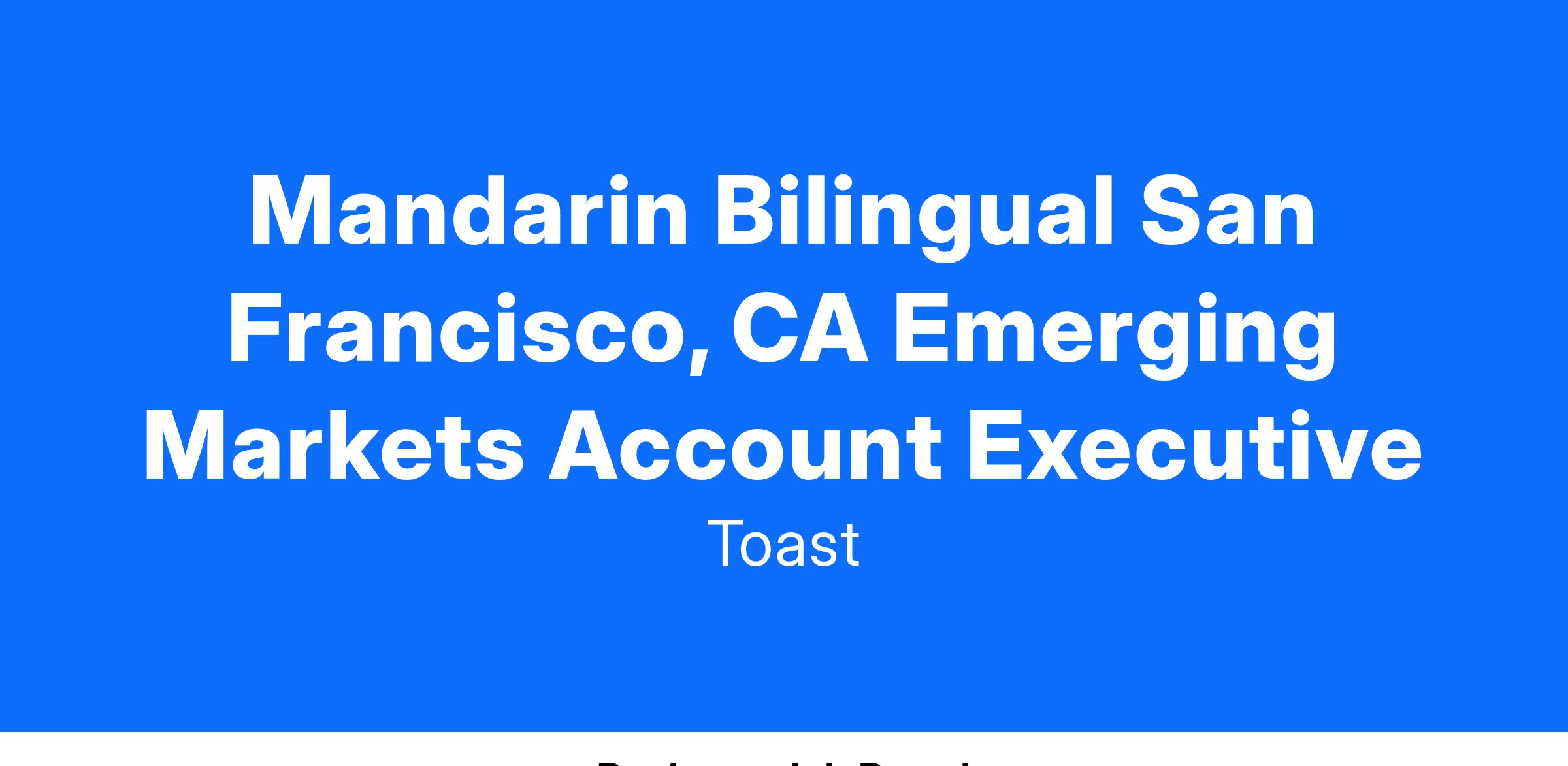 Mandarin Bilingual San Francisco, CA Emerging Markets Account Executive