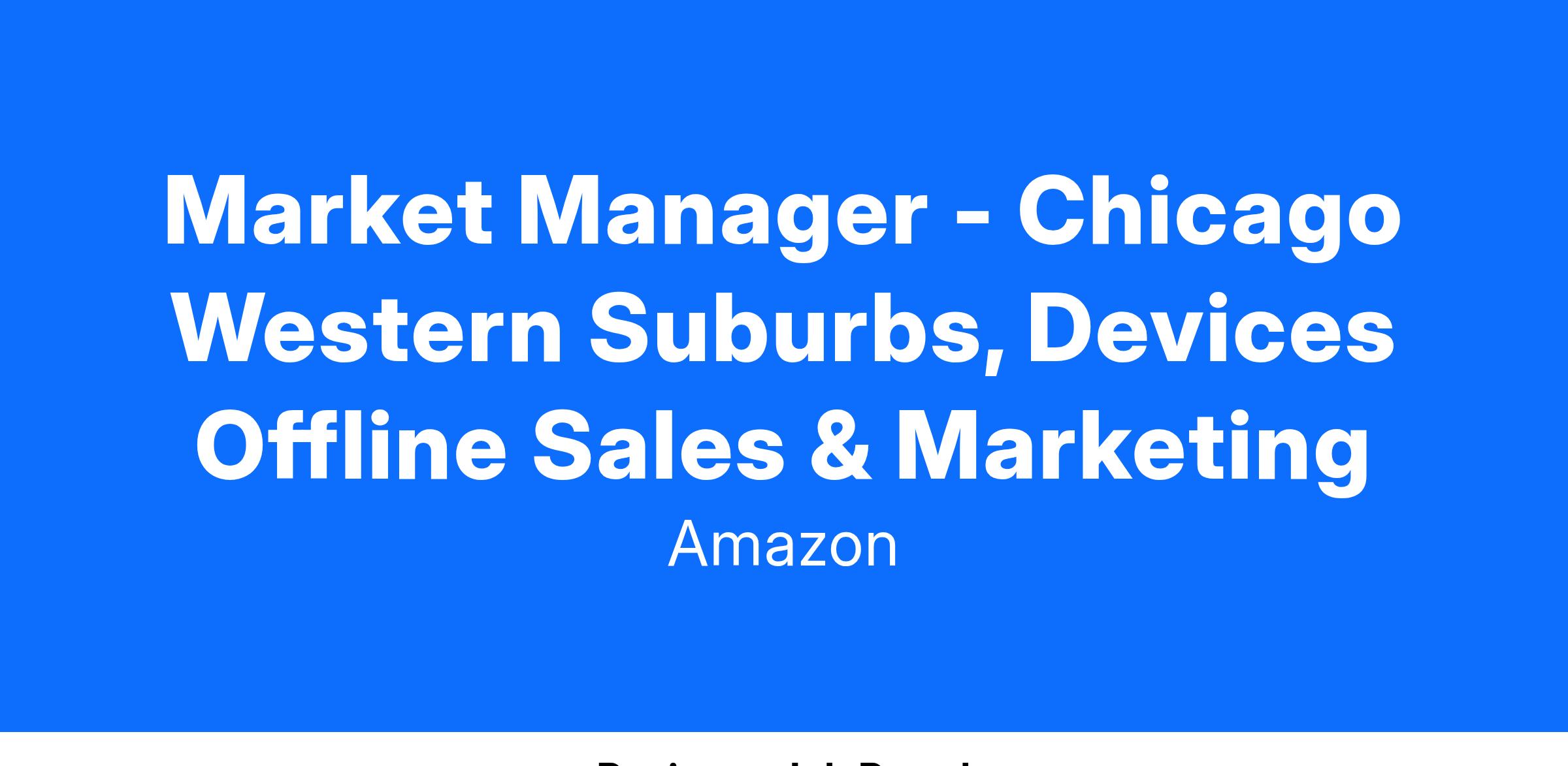 Market Manager - Chicago Western Suburbs, Devices Offline Sales & Marketing