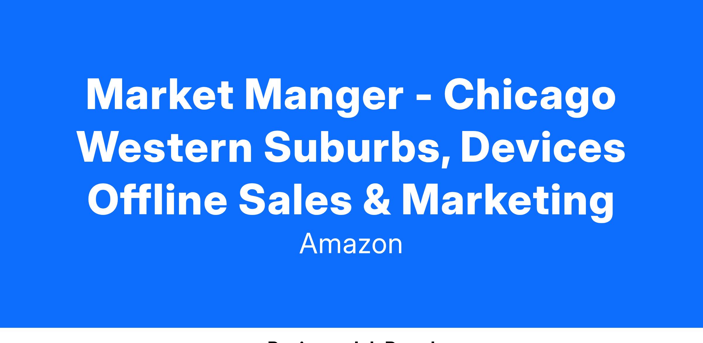 Market Manger - Chicago Western Suburbs, Devices Offline Sales & Marketing
