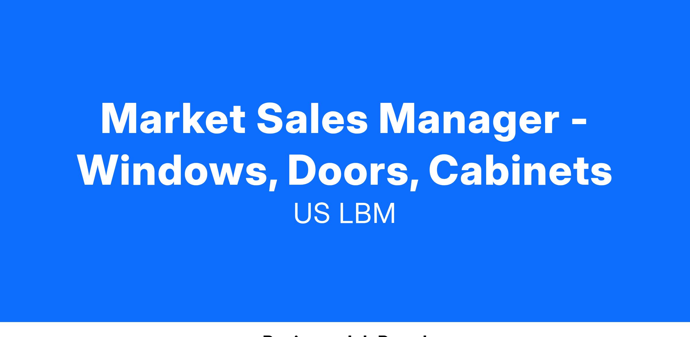 The Market Sales Manager is accountable for executing on strategic plans, driving sales, and leading sales teams for Windows, Doors, and Cabinets throughout Arizona Building Supply. Leads the sales department and manages all sales operations in the market. Duties include developing sales strategies, training staff, setting sales goals, and establishing customer relationships. Ensure sales revenue meet or exceed goals to keep the company profitable. Tests different sales plans and adjusts the sales strategy as needed to increase profits. Typically manages locations with revenue greater than $100M annually.