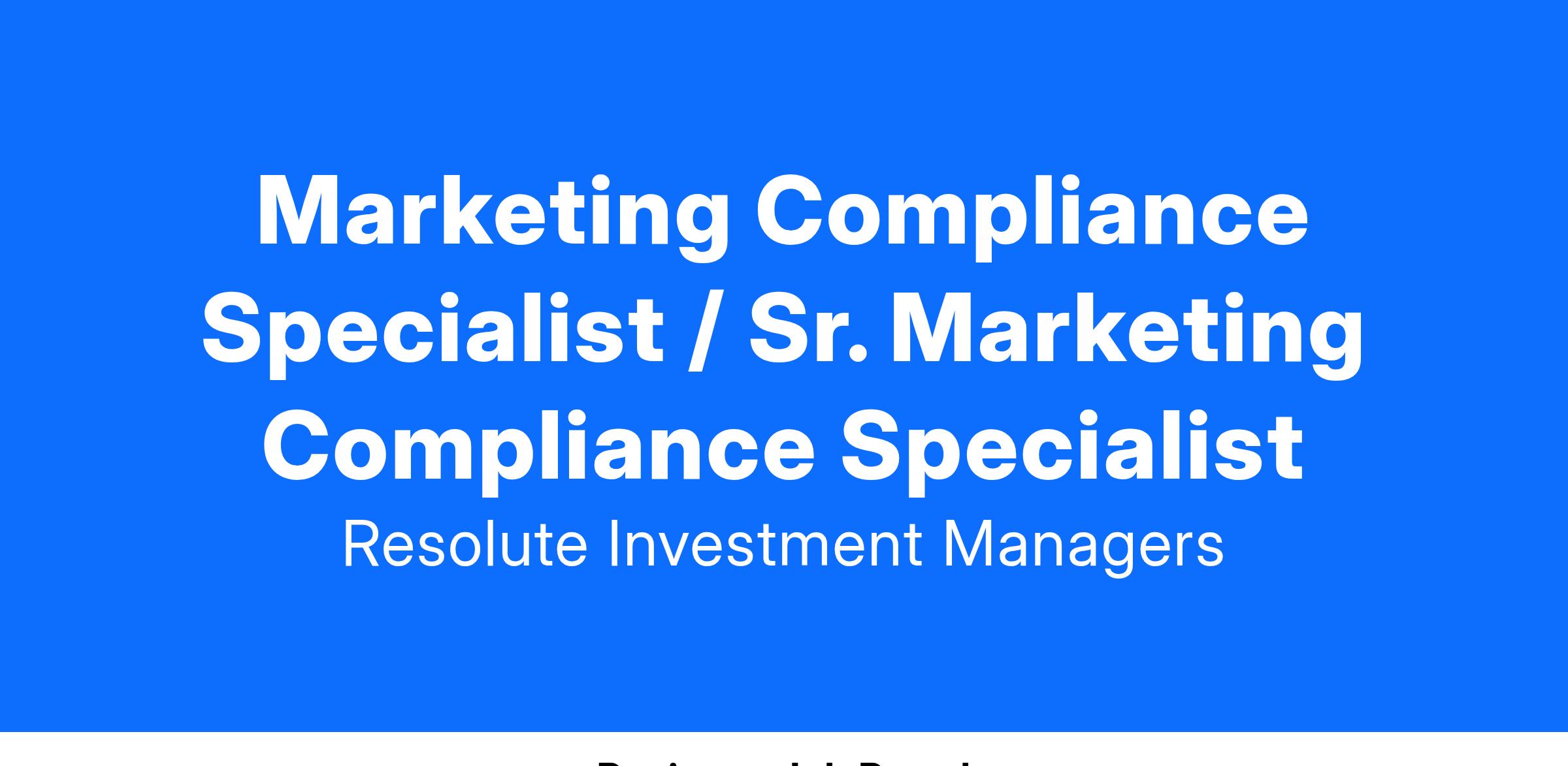 Marketing Compliance Specialist / Sr. Marketing Compliance Specialist