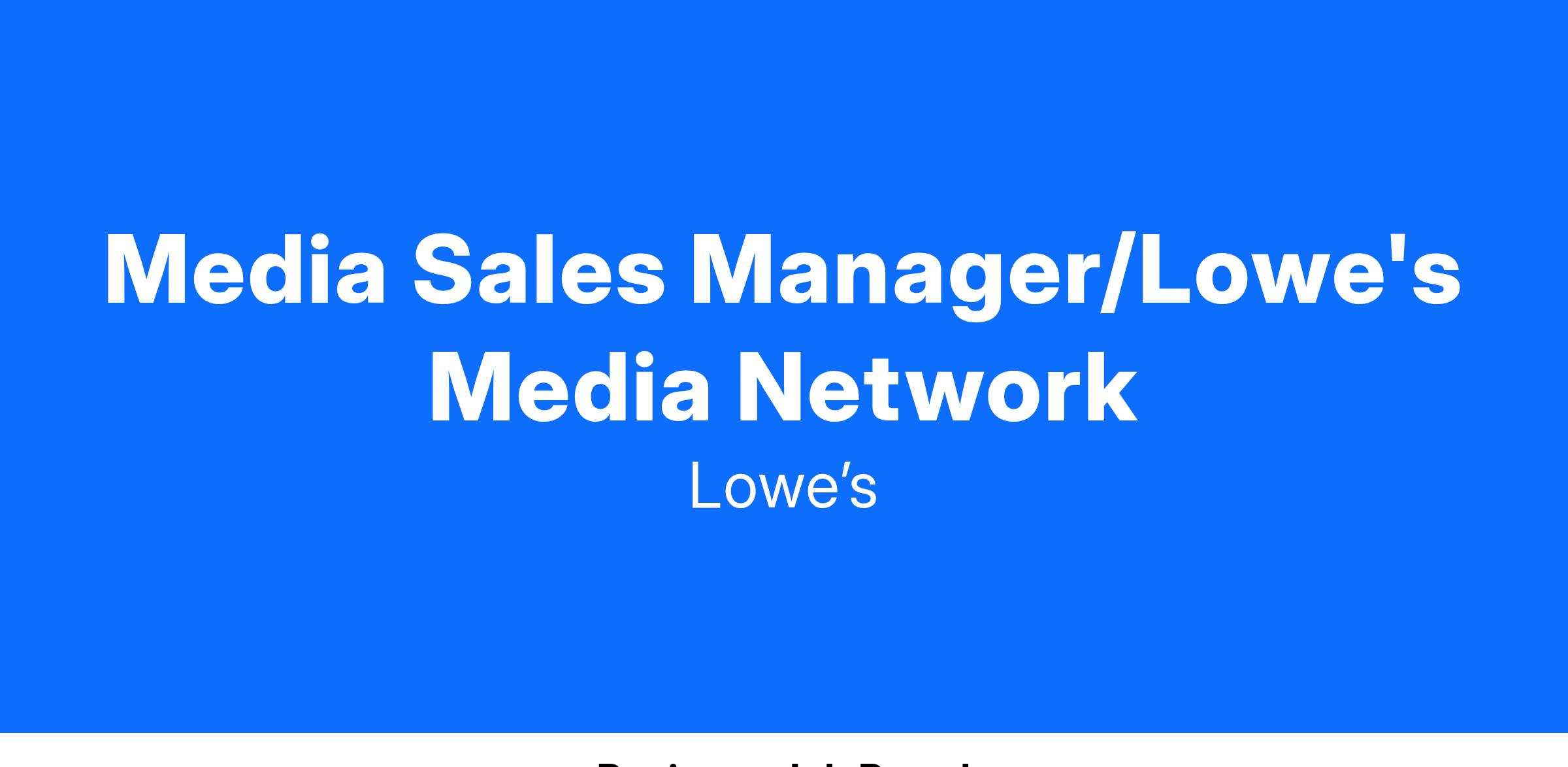 The Media Sales Manager will play a critical role in accelerating the revenue growth of our advertising sales team, with a focus on driving digital revenue through the direct sale of our portfolio of ad products, including, but not limited to: programmatic offsite multi-channel, social, onsite sponsored & display, instore audio and e-mail. The Senior Manager of Sales is responsible for acting as a partnership leader between Lowe's Media Network, other internal Lowe's teams, media agencies, Demand Side Partners, and advertisers. The Media Sales Manager will leverage an in-depth knowledge of the digital and programmatic ecosystem along with strong organizational, analytical and project management skills to identify sales opportunities for account growth while providing exceptional client service. In this role, the sales manager will work closely with a Client Services Director and/or Senior Manager of Sales on implementing a Small to Mid-sized category specific revenue strategy.