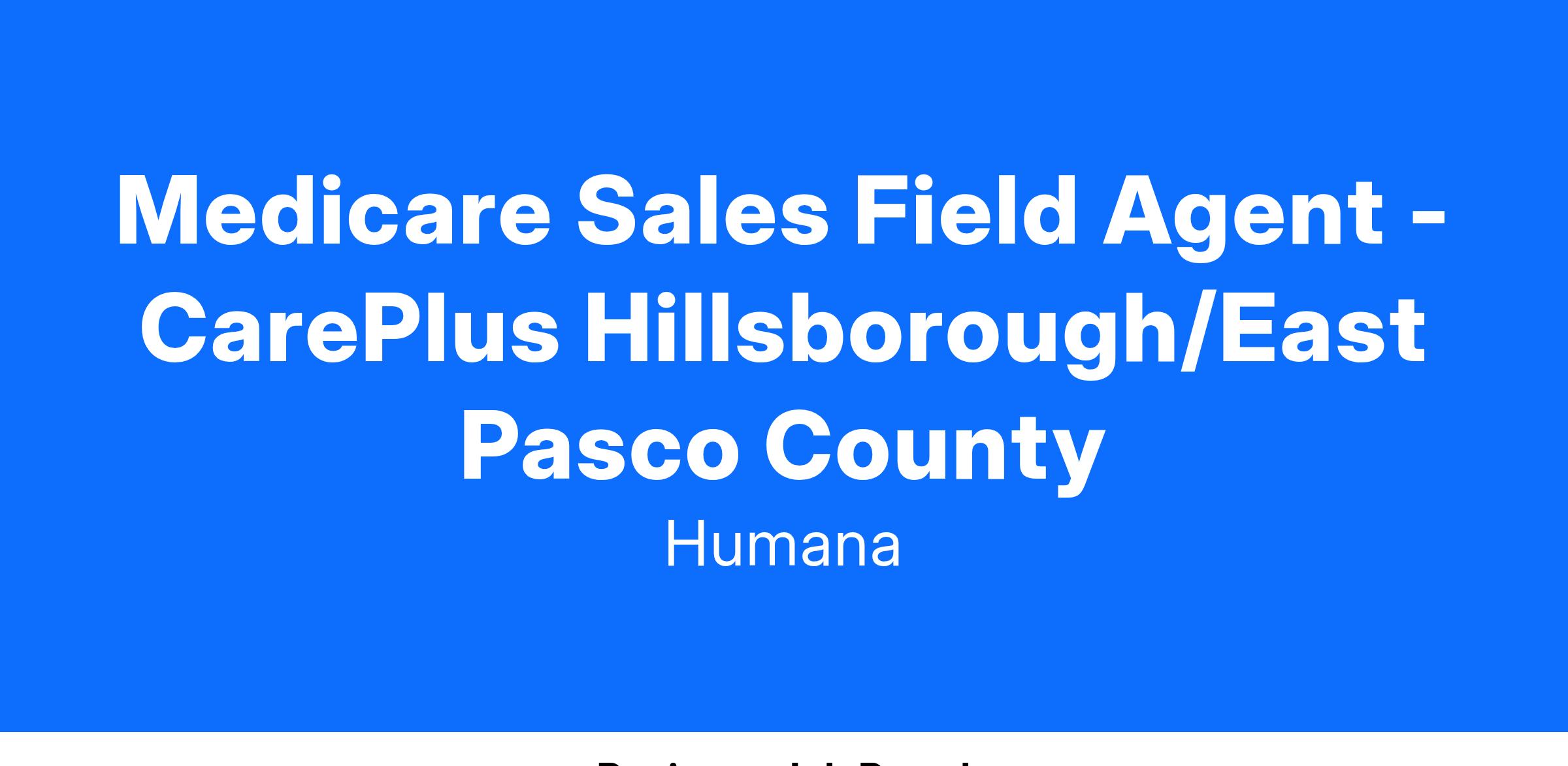 In this field position, you will: build community relationships, drive self-generated sales and meet sales goals and metrics while working independently. You will be interacting with CarePlus’ customers, external business partners and the community we serve through face-to-face, virtual and telephonic interactions. Face to face will encompass grass roots marketing in the community and visiting prospects in their homes. Our Medicare Sales Field Agent sells individual health plan products and educate beneficiaries on our services in a field setting. Some of our additional products include: Life, Annuity, Indemnity, Dental, Vision, Prescription, and more. Humana has an inclusive and diverse culture welcoming candidates with multilingual skill sets to service our consumers.