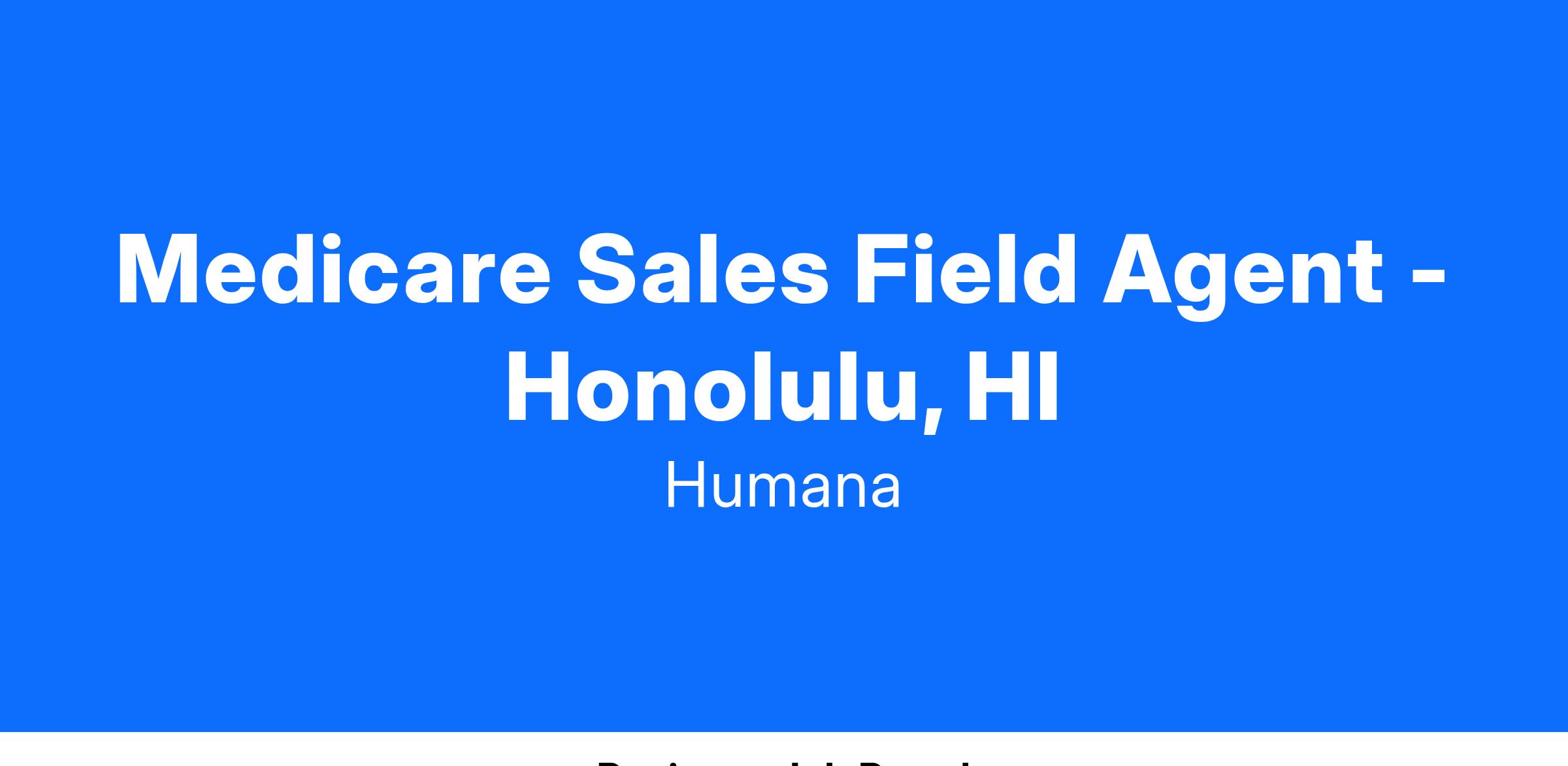 Medicare Sales Field Agent - Honolulu, HI