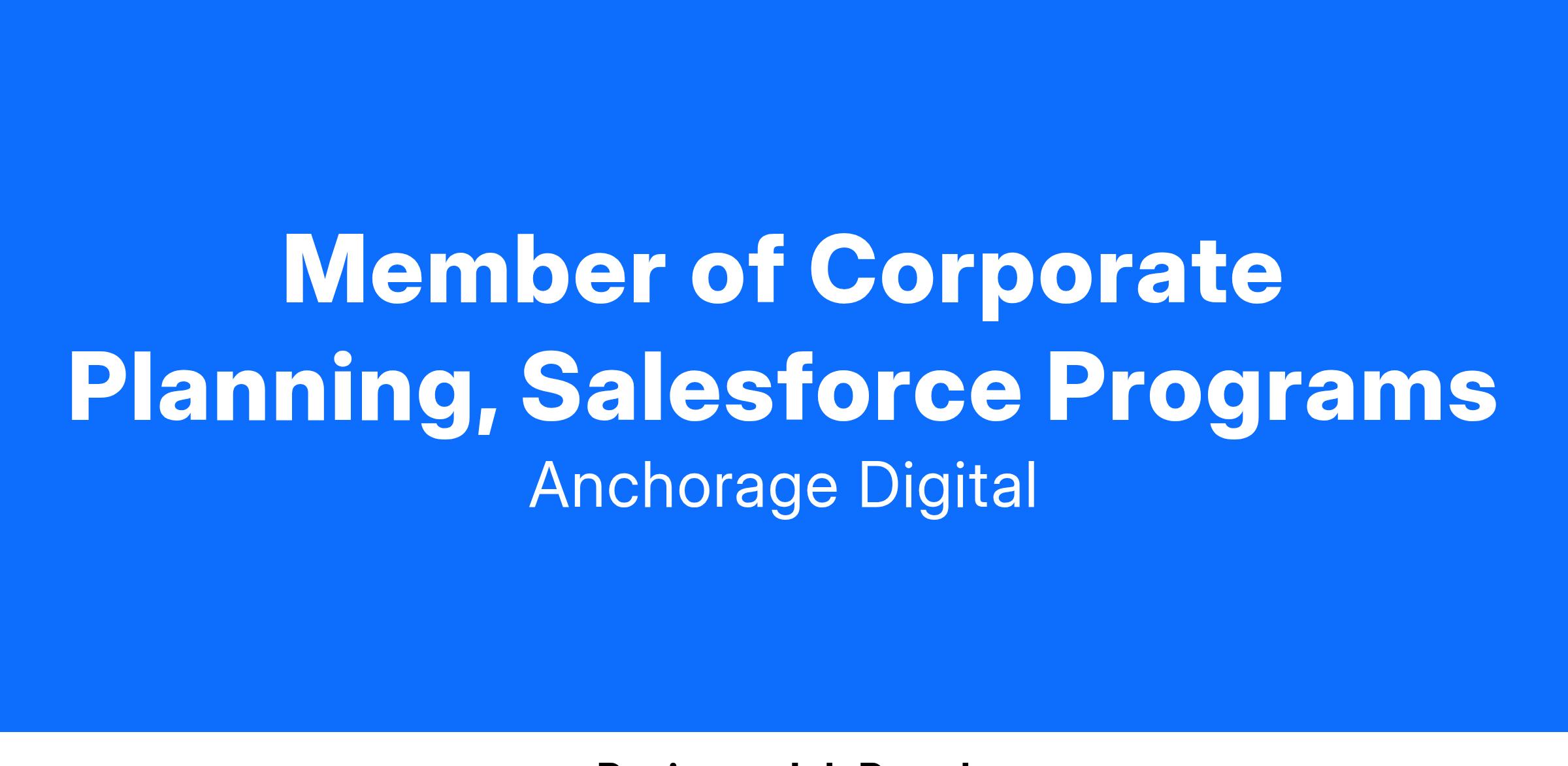 As Anchorage Digital’s Member of Corporate Planning, Salesforce Programs, you are responsible for designing and implementing firmwide go-to-market operational processes, supporting product ownership of the firm’s supportive go-to-market systems including in particular Salesforce, and providing program management expertise in routine business requirements’ intake, solutioning, prioritization, delivery, and results’ reporting. You are capable of independently owning your sales operations deliverables, identifying within go-to-market activities the highest-impact challenges to solve, setting the right course of action and clear goals, organizing your work, and holding yourself and teammates accountable for challenges of material difficulty and scope.